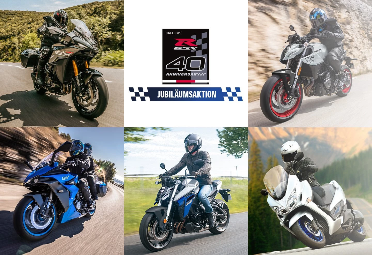 Zum 40. Jubiläum der GSX-R-Baureihe bietet Suzuki bis zu 2.185 € Preisvorteil auf ausgewählte Modelle der GSX-Familie sowie den Burgman 400. Die Aktion läuft bis 30. September 2025 bei teilnehmenden Händlern - inklusive Streetfighter, Sporttourer und Roller.