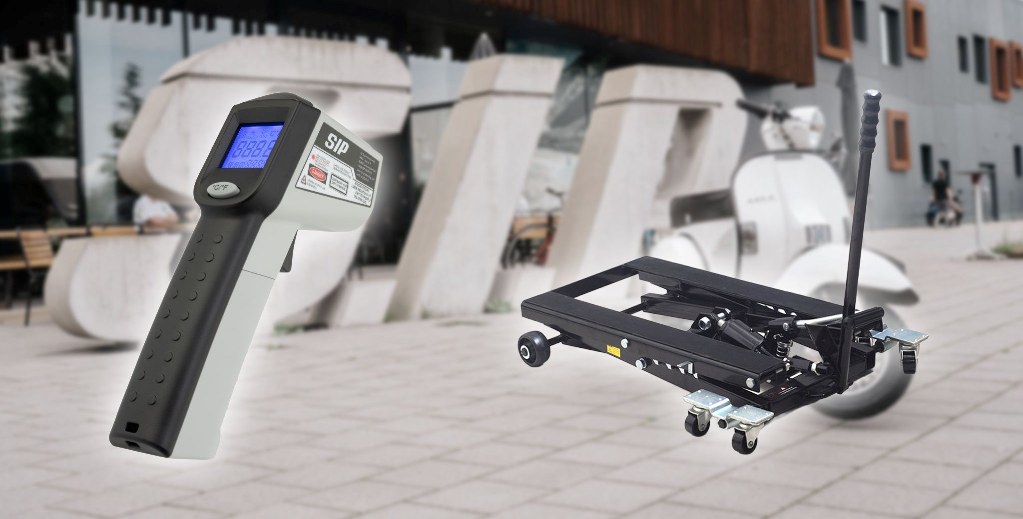 SIP Scootershop erweitert sein Sortiment um clevere Werkzeuge für Motorrad- und Rollerfans. Von der mobilen Hebebühne bis zum Infrarot-Thermometer.
