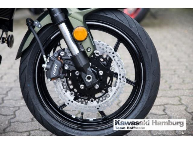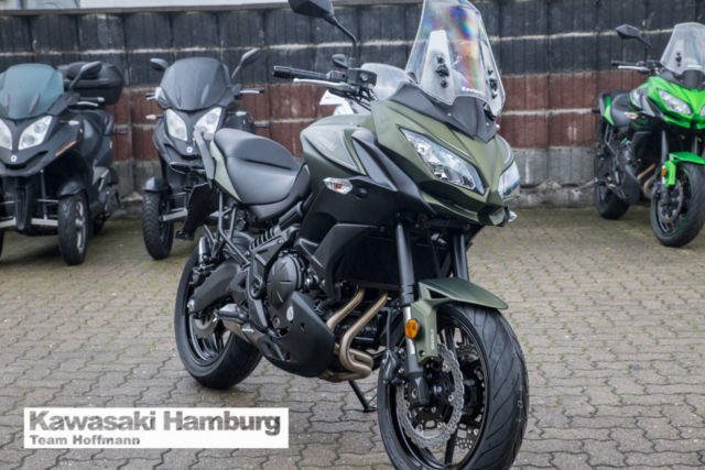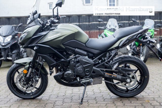 Du kannst mich auch günstig Mieten. 3 Tage ab 119,- Euro, 7 Tage ab 239,- Euro Modell 2018 ALLE STRASSEN. EIN MOTORRAD. Schwer zu erklären und unmöglich einzuordnen. Die neue Versys ist weit mehr als die Summe ihrer Teile. Lange Federwege und sportliche 17"-Räder machen die neu gestylte Versys zum Sportgerät, Cityflitzer und Alpenbezwinger in einem. Sportliches Styling Das komplett überarbeitete Stylingpaket kombiniert Stil, Windschutz, Aerodynamik und Wärmehaushalt. Größerer Tank Das größere Volumen trägt zu der größeren Reichweite bei. Der kurze Kraftstofftank bringt den Fahrer näher an den Lenker, wodurch die Kontrolle erleichtert wird. 17-Zoll-Räder 17-Zoll-Räder vorne und hinten unterstützen das schnelle, sportliche Handling und ermöglichen die Verwendung unterschiedlichster Sportreifen. Die stärkeren Räder erhöhen außerdem die Nutzlast Upside-Down-Gabel Die 41-mm-Gabel mit langem Federweg und steifen Federn ist der Schlüssel zur aktiven Kontrolle der Gewichtsverteilung des Motorrads zwischen vorne und hinten. Durch getrennte Funktionen für jeden Holm können alle Einsteller zur einfachen Einstellung oben an der Gabel angeordnet werden. Die Einstellungen tragen sowohl zum leichten Handling als auch zum Fahrkomfort bei. Verringerte Vibrationen Wie die oberen, hinteren Motoraufhängungen mit Gummilagern sind die vorderen Motoraufhängungen ebenfalls gummigelagert. Gummilager für die Lenker- und Fußrastenhalterungen erhöhen den Fahrerkomfort zusätzlich. Gutes Fahrwerks-Feedback Die Fahrwerkseinstellungen sorgen für gutes Feedback und stärken somit das Vertrauen des Fahrers. ABS serienmäßig In Deutschland wird die Versys 650 serienmäßig mit ABS angeboten. UVM... Probefahrten auf allen Modellen möglich 3 Jahre Garantie bei allen Gebrauchtfahrzeugen!! Bundesweiter Zulassungsdienst Drosselung auf 35KW möglich Gerne nehmen wir Ihr Fahrzeuge in Zahlung Finanzierungen ohne Anzahlung sind möglich Motorradvermietung Unser Team freut sich auf Ihren Besuch, und berät sie gerne Unsere Öffnungszeiten: Mo.- Fr. 09:00 bis 18.00 Uhr Sa. 10:00 bis 16.00 Uhr oder nach Vereinbarung Irrtümer, Zwischenverkauf und Änderungen vorbehalten.