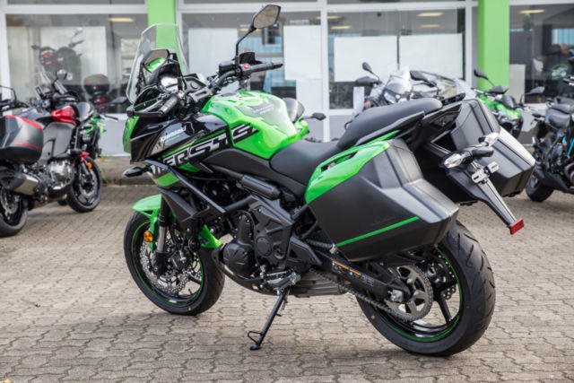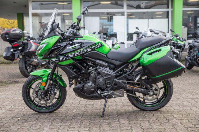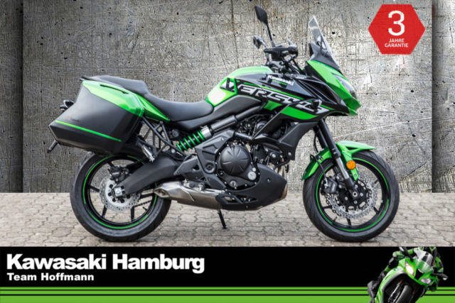 Modell 2018 ALLE STRASSEN. EIN MOTORRAD. Schwer zu erklären und unmöglich einzuordnen. Die neue Versys ist weit mehr als die Summe ihrer Teile. Lange Federwege und sportliche 17"-Räder machen die neu gestylte Versys zum Sportgerät, Cityflitzer und Alpenbezwinger in einem. Sportliches Styling Das komplett überarbeitete Stylingpaket kombiniert Stil, Windschutz, Aerodynamik und Wärmehaushalt. Größerer Tank Das größere Volumen trägt zu der größeren Reichweite bei. Der kurze Kraftstofftank bringt den Fahrer näher an den Lenker, wodurch die Kontrolle erleichtert wird. 17-Zoll-Räder 17-Zoll-Räder vorne und hinten unterstützen das schnelle, sportliche Handling und ermöglichen die Verwendung unterschiedlichster Sportreifen. Die stärkeren Räder erhöhen außerdem die Nutzlast Upside-Down-Gabel Die 41-mm-Gabel mit langem Federweg und steifen Federn ist der Schlüssel zur aktiven Kontrolle der Gewichtsverteilung des Motorrads zwischen vorne und hinten. Durch getrennte Funktionen für jeden Holm können alle Einsteller zur einfachen Einstellung oben an der Gabel angeordnet werden. Die Einstellungen tragen sowohl zum leichten Handling als auch zum Fahrkomfort bei. Verringerte Vibrationen Wie die oberen, hinteren Motoraufhängungen mit Gummilagern sind die vorderen Motoraufhängungen ebenfalls gummigelagert. Gummilager für die Lenker- und Fußrastenhalterungen erhöhen den Fahrerkomfort zusätzlich. Gutes Fahrwerks-Feedback Die Fahrwerkseinstellungen sorgen für gutes Feedback und stärken somit das Vertrauen des Fahrers. ABS serienmäßig In Deutschland wird die Versys 650 serienmäßig mit ABS angeboten. UVM... Probefahrten auf allen Modellen möglich 3 Jahre Garantie bei allen Gebrauchtfahrzeugen!! Bundesweiter Zulassungsdienst Drosselung auf 35 KW möglich Gerne nehmen wir Ihr Fahrzeuge in Zahlung Finanzierungen ohne Anzahlung sind möglich Motorradvermietung Unser Team freut sich auf Ihren Besuch, und berät sie gerne Unsere Öffnungszeiten: Mo.- Fr. 09:00 bis 18.00 Uhr Sa. 10:00 bis 16.00 Uhr Irrtümer, Zwischenverkauf und Änderungen vorbehalten. Kawasaki Hamburg