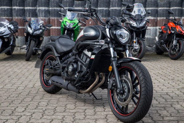 Du kannst mich auch günstig Mieten. 3 Tage ab 119,- Euro, 7 Tage ab 239,- Euro Geh deinen eigenen Weg ... Die Vulcan S ist kein klassischer Cruiser. Mit ihrem Parallel-Twin und einem einzigartigen Fahrwerks- und Federungskonzept wurde sie für Fahrertypen entwickelt, die bewusst unabhängig denken. Sie ist nichts für den Massengeschmack, nichts für schnelllebige Moden oder Lifestyles. Die Vulcan S ermutigt jeden, dem eigenen Stil zu folgen! Niedrige SitzhöheBei jedem Halt ganz einfach mit den Füßen den Boden zu erreichen, ist einer der wichtigsten Faktoren, um sich auf einem Motorrad wohl zu fühlen. Mit 705 mm Sitzhöhe ist die Vulcan S sehr bequem. Leicht ablesbare InstrumenteDie Instrumente beinhalten einen Drehzahlmesser im Analog-Stil sowie ein Multifunktions-LCD. Damit wird der Fahrer stets auf dem Laufenden gehalten. Einstellbare Fußrasten Die Fußrasten können in drei Positionen eingestellt werden, um der Größe und den Vorlieben des Fahrers Rechnung zu tragen. Die Positionen sind: Standard, 25 mm nach vorne, 25 mm nach hinten Große Scheibenbremsen Die großen Bremsscheiben sorgen für sichere Ampelstopps und sind gleichzeitig auch von Fahranfängern leicht zu kontrollieren. .Sie können Ihr Traummotorrad bei uns auch günstig mieten.* http://motorradzentrum-hamburg.de/pages/vermietung.php Probefahrten auf allen Modellen möglich 3 Jahre Garantie bei allen Gebrauchtfahrzeugen!! Bundesweiter Zulassungsdienst Bundesweiter Versand ab 99, - Drosselung auf 35KW möglich Gerne nehmen wir Ihr Fahrzeuge in Zahlung Finanzierungen ohne Anzahlung sind möglich Motorradvermietung Unser Team freut sich auf Ihren Besuch, und berät sie gerne Unsere Öffnungszeiten: Mo.- Fr. 09:00 bis 18.00 Uhr Sa. 10:00 bis 16.00 Uhr oder nach Vereinbarung Irrtümer, Zwischenverkauf und Änderungen vorbehalten. Kawasaki Hamburg
