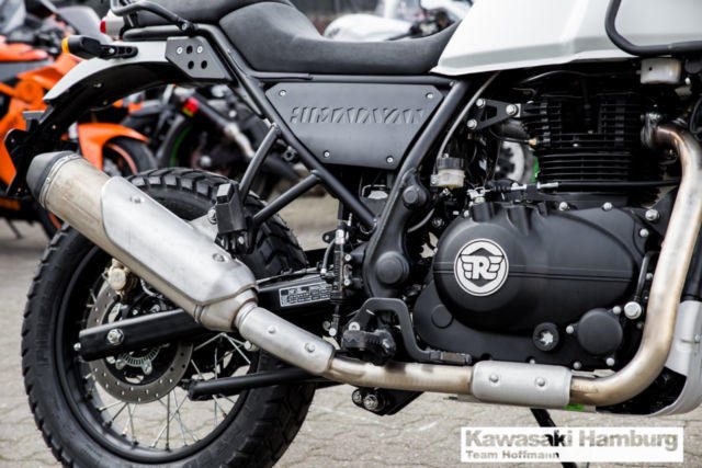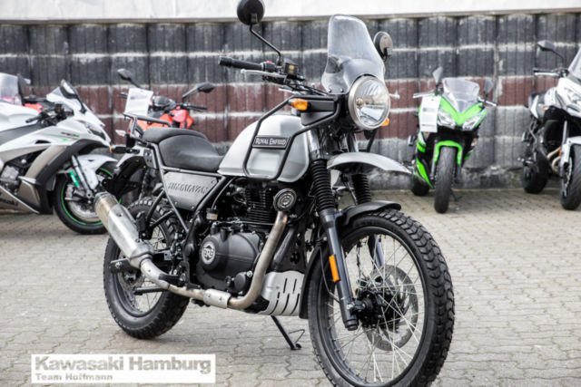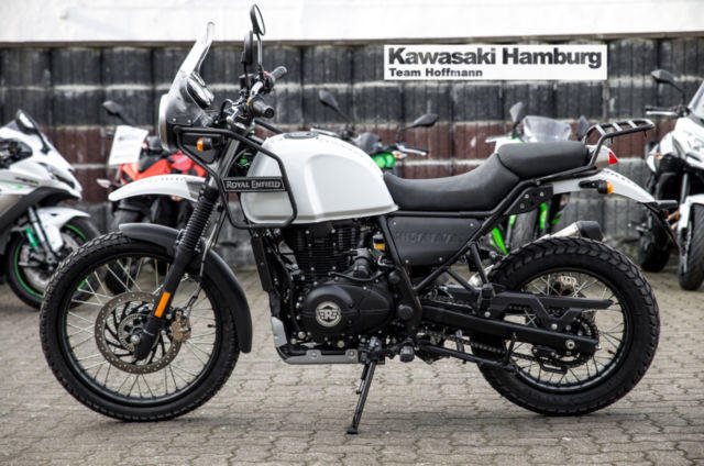 Du kannst mich auch günstig Mieten. 3 Tage ab 99,- Euro, 7 Tage ab 199,- Euro Royal Enfield Himalayan Die Himalayan verbindet Royal Enfields historische Erfahrung im Himalaya mit einem komplett neuen Motor und einer geländeerprobten Federung. Das Resultat? Eine Maschine mit der Du eine 3-wöchige Tour genauso leicht bewältigst wie eine 30-minütige Spritztour. Motor: Motortyp: Einzylinder, 4-Takt, luftgekühlt, OHV Hubraum: 411 cm Bohrung Hub: 78 86 mm Verdichtung: 9,5:1 Gemischaufbereitung: elektronische Einspritzung Zündung: elektronisch Starter: Elektro-Starter Max. Leistung: 18,0 kW (24,5 PS) bei 6.500 U/min. Max. Drehmoment: 32,0 Nm bei 4.500 U/min. Verbrauch: 3,0 l/100 km CO2-Emission: 74,3 g/km Antrieb: Endantrieb: Kette Kupplung: Mehrscheiben-Ölbadkupplung Schaltung: 5-Gang-Schaltgetriebe, linksgeschaltet Abmessungen: Länge: 2.190 mm Breite: 840 mm Höhe: 1.360 mm Radstand: 1.465 mm Sitzhöhe: 800 mm Tankinhalt: 15,0 Liter Eigengewicht: 185 kg Fahrwerk: Rahmen: Doppelschleifen-Rohrrahmen Federung vorne: 41 mm Teleskopfedergabel, 200 mm Federweg Federung hinten: Monoshock mit Umlenkung Bremsen vorne: Scheibenbremse 300 mm mit 2-Kolben-Bremszange Bremse hinten: Scheibenbremse 240 mm Bereifung vorne: 90/90-21 Bereifung hinten: 120/90-17 Farben: Snow (Weiß), Granite (Dunkelgrau) Sie können Ihr Traummotorrad bei uns auch günstig mieten. http://motorradzentrum-hamburg.de/pages/vermietung.php Probefahrten auf allen Modellen möglich Bundesweiter Zulassungsdienst Bundesweiter Versand ab 99, - Gerne nehmen wir Ihr Fahrzeuge in Zahlung Finanzierungen ohne Anzahlung sind möglich Motorradvermietung Unser Team freut sich auf Ihren Besuch, und berät sie gerne Unsere Öffnungszeiten: Mo.- Fr. 09:00 bis 18.00 Uhr Sa. 10:00 bis 16.00 Uhr oder nach Vereinbarung Irrtümer, Zwischenverkauf und Änderungen vorbehalten.