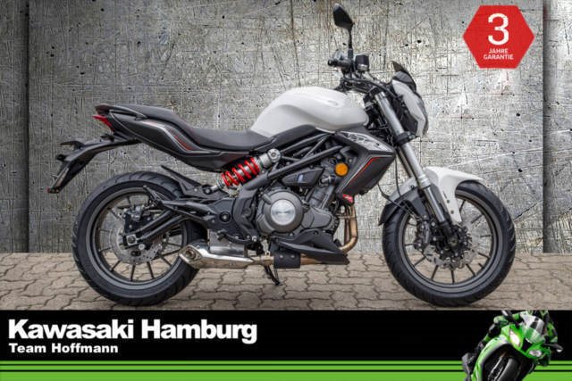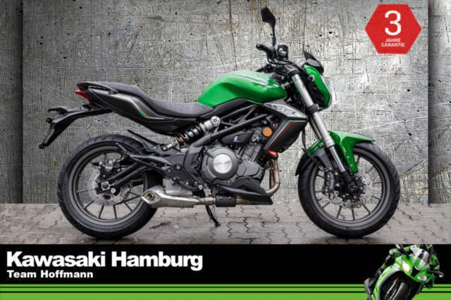 Benelli BN 302 in grün und weiss lieferbar. Du kannst mich auch günstig Mieten. 3 Tage ab 99,- Euro, 7 Tage ab 199,- Euro Die neue BN 302 wurde mit Leidenschaft für Fahrer aller Art geschaffen, von den Anfängern bis zu den Erfahrenen, die Motorradfahren in seiner reinsten Form erleben möchten. Die BN 302 begeistert ihre Fahrer aber auch mit ihrem stylischem und aggressivem Look. Technische Daten: Motortyp: 2-Zylinder-Reihenmotor, DOHC, flüssigkeitsgekühlt Hubraum: 300 cm Max. Leistung: 28 kW (38 PS) bei 10.000 U/min. Max. Drehmoment: 25,6 Nm bei 9.750 U/min. Gemischaufbereitung: EFI Getriebe: 6-Gang-Schaltgetriebe Starter: Elektrostarter Bremse vorne: 24-Kolben-Radialbremszange, 260 mm Bremsscheiben, schwimmend gelagert, Bosch ABS Bremse hinten: eine hydraulische Scheibenbremse, 240 mm Bremsscheibe, Bosch ABS Bereifung vorne: 110/70-17 oder 120/70ZR17 Bereifung hinten: 140/70-17 oder 160/60ZR17 Länge: 2.130 mm Breite: 800 mm Höhe: 1.120 mm Sitzhöhe: 795 mm Eigengewicht (fahrbereit): 204 kg Tankinhalt: 16 l Verbrauch: 4,3 l/100km CO2-Emission: 99 g/km Sie können Ihr Traummotorrad bei uns auch günstig mieten. http://motorradzentrum-hamburg.de/pages/vermietung.php Telefon : 040 - 219 710 0 Probefahrten auf allen Modellen möglich 3 Jahre Garantie bei allen Gebrauchtfahrzeugen!! Bundesweiter Zulassungsdienst Bundesweiter Versand ab 99, - Gerne nehmen wir Ihr Fahrzeuge in Zahlung Finanzierungen ohne Anzahlung sind möglich Motorradvermietung Unser Team freut sich auf Ihren Besuch, und berät sie gerne Unsere Öffnungszeiten: Mo.- Fr. 09:00 bis 18.00 Uhr Sa. 10:00 bis 16.00 Uhr Irrtümer, Zwischenverkauf und Änderungen vorbehalten. Kawasaki Hamburg