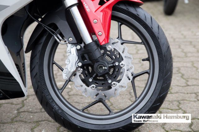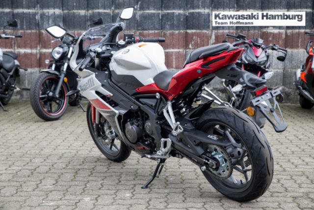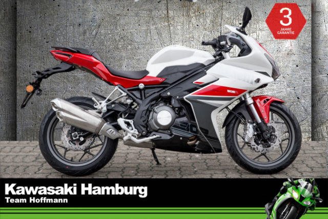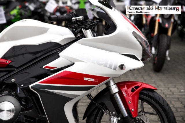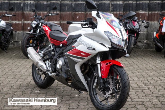 Du kannst mich auch günstig Mieten. 3 Tage ab 99,- Euro, 7 Tage ab 199,- Euro Benelli BN 302 R Mit der BN 302R bringt Benelli ein richtiges Sportbike mit Zweizylinder-Motor in die 300er-Klasse. Mit ihrem dynamischen Design lebt die glorreiche Rennsport-Historie der italienischen Marke wieder auf! Technische Daten: Motortyp: 2-Zylinder-Reihenmotor, DOHC, flüssigkeitsgekühlt Hubraum: 300 cm Max. Leistung: 28 kW (38 PS) bei 10.000 U/min. Max. Drehmoment: 25,6 Nm bei 9.750 U/min. Gemischaufbereitung: EFI Getriebe: 6-Gang-Schaltgetriebe Starter: Elektrostarter Bremse vorne: 24-Kolben-Radialbremszange, 260 mm Bremsscheiben, schwimmend gelagert Bremse hinten: eine hydraulische Scheibenbremse, 240 mm Bremsscheibe Bereifung vorne: 110/70R17 Bereifung hinten: 150/60R17 Länge: 2.150 mm Breite: 745 mm Höhe: 1.115 mm Sitzhöhe: 780 mm Eigengewicht (fahrbereit): 190 kg Tankinhalt: 14 l Verbrauch: 4,7 l/100km CO2-Emission: 108 g/km Sie können Ihr Traummotorrad bei uns auch günstig mieten. http://motorradzentrum-hamburg.de/pages/vermietung.php Telefon : 040 - 219 710 0 Probefahrten auf allen Modellen möglich 3 Jahre Garantie bei allen Gebrauchtfahrzeugen!! Bundesweiter Zulassungsdienst Bundesweiter Versand ab 99, - Gerne nehmen wir Ihr Fahrzeuge in Zahlung Finanzierungen ohne Anzahlung sind möglich Motorradvermietung Unser Team freut sich auf Ihren Besuch, und berät sie gerne Unsere Öffnungszeiten: März - September:: Mo.- Fr. 09:00 bis 19.00 Uhr Sa. 10:00 bis 16.00 Uhr Oktober - Februar: Mo.- Fr. 09:00 bis 18.00 Uhr Sa. 10:00 bis 16.00 Uhr Irrtümer, Zwischenverkauf und Änderungen vorbehalten. Kawasaki Hamburg
