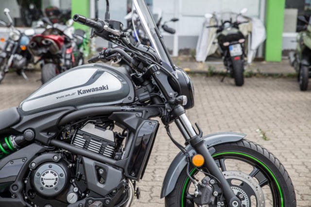 inkl. Tom Tom Vio Geh deinen eigenen Weg ... Die Vulcan S ist kein klassischer Cruiser. Mit ihrem Parallel-Twin und einem einzigartigen Fahrwerks- und Federungskonzept wurde sie für Fahrertypen entwickelt, die bewusst unabhängig denken. Sie ist nichts für den Massengeschmack, nichts für schnelllebige Moden oder Lifestyles. Die Vulcan S ermutigt jeden, dem eigenen Stil zu folgen! Niedrige SitzhöheBei jedem Halt ganz einfach mit den Füßen den Boden zu erreichen, ist einer der wichtigsten Faktoren, um sich auf einem Motorrad wohl zu fühlen. Mit 705 mm Sitzhöhe ist die Vulcan S sehr bequem. Leicht ablesbare InstrumenteDie Instrumente beinhalten einen Drehzahlmesser im Analog-Stil sowie ein Multifunktions-LCD. Damit wird der Fahrer stets auf dem Laufenden gehalten. Einstellbare Fußrasten Die Fußrasten können in drei Positionen eingestellt werden, um der Größe und den Vorlieben des Fahrers Rechnung zu tragen. Die Positionen sind: Standard, 25 mm nach vorne, 25 mm nach hinten Große Scheibenbremsen Die großen Bremsscheiben sorgen für sichere Ampelstopps und sind gleichzeitig auch von Fahranfängern leicht zu kontrollieren. .Sie können Ihr Traummotorrad bei uns auch günstig mieten.* http://motorradzentrum-hamburg.de/pages/vermietung.php Probefahrten auf allen Modellen möglich Bundesweiter Zulassungsdienst Bundesweiter Versand ab 99, - Drosselung auf 35KW möglich Gerne nehmen wir Ihr Fahrzeuge in Zahlung Finanzierungen ohne Anzahlung sind möglich Motorradvermietung Unser Team freut sich auf Ihren Besuch, und berät sie gerne Unsere Öffnungszeiten: Mo.- Fr. 09:00 bis 18.00 Uhr Sa. 10:00 bis 16.00 Uhr oder nach Vereinbarung Irrtümer, Zwischenverkauf und Änderungen vorbehalten