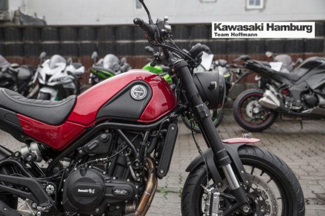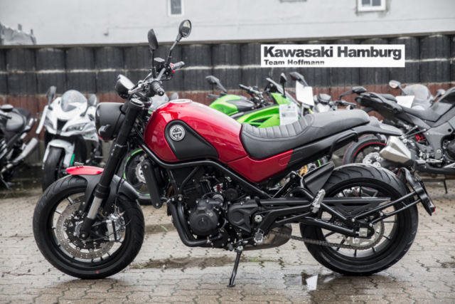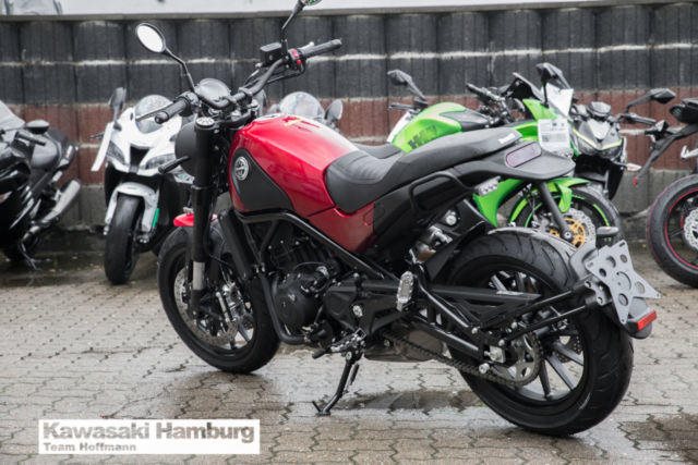 Du kannst mich auch günstig Mieten. 3 Tage ab 119,- Euro, 7 Tage ab 239,- Euro Benelli Leoncino, neues Modell 2018 in allen Farben lieferbar Leoncino Eine Legende ist zurück. Mit mehr als einem jahrhundert Tradition hat das neue Design Centro Benelli in Pesaro aus dem Erbe die Inspiration geschöpft, und eine Legende auferstehen lassen, die Leoncino. Dieses völlig neue Design von Centro Benelli passt perfekt zu den Motorrädern aus Pesaro. Scharfe Formen mit harmonischen Linien pure Emotion, Motorräder für die Benelli berühmt ist. Auf dem vorderen Kotflügel, zeigt sich stolz der Löwen von Pesaro, Scheinwerfer mit modernster LED-Technologie, der Kraftstofftank und der Sitz, alles fließt, ineinander und zeigt die Persönlichkeit dieser neuen Leoncino. Der schöne Stahl-Gitterrohrrahmen beherbergt ein ganz neues Triebwerk aus Pesaro, Zweizylinder-Viertaktmotor, flüssigkeitsgekühlte 500cc bei Benelli entwickelt und hergestellt. Dieser völlig neue Motor ist spritzig und fahraktiv, mit einer Maximalleistung von 48 CV (35 kW) bei 8500 Umdrehungen pro Minute und einem maximalen Drehmoment von 45 Nm (4,6 kgm). Mit Nasssumpfschmierung, elektronische Einspritzung, zwei Nockenwellen, 4 Ventile pro Zylinder, 6-Gang-Getriebe. Diese neue Benelli Kraftwerk hat alle Voraussetzungen eines n legendären Benelli Motors, klein, leicht , kraftvoll. Die neue Leoncino ist ein authentisches Design-Konzept mit reinem Herzen, die den Stil und die Zugänglichkeit das Ursprüngliche entdeckt, das alles bei einem modernen Motorrad. Eine aufregende Erfahrung, ein Original. Technische Daten: Motortyp: 2-Zylinder-Reihenmotor, DOHC, flüssigkeitsgekühlt Hubraum: 500 cm Max. Leistung: 35 kW (48 PS) bei 8.500 U/min. Max. Drehmoment: 46 Nm bei 6.000 U/min. Gemischaufbereitung: EFI Getriebe: 6-Gang-Schaltgetriebe Starter: Elektrostarter Bremse vorne: 24-Kolben-Radialbremszange, 320 mm Bremsscheiben, ABS Bremse hinten: eine hydraulische Scheibenbremse, 260 mm Bremsscheibe Bereifung vorne: 120/70ZR17 Bereifung hinten: 160/60ZR17 Länge: 2.160 mm Breite: 875 mm Höhe: 1.160 mm Radstand: 1.460 mm Sitzhöhe: 815 mm Eigengewicht (fahrbereit): 207 kg Tankinhalt: 13 l Verbrauch: 4,3 l/100km CO2-Emission: 100 g/km Sie können Ihr Traummotorrad bei uns auch günstig mieten. http://motorradzentrum-hamburg.de/pages/vermietung.php Telefon : 040 - 219 710 0 Probefahrten auf allen Modellen möglich Bundesweiter Zulassungsdienst Bundesweiter Versand ab 99, - Gerne nehmen wir Ihr Fahrzeuge in Zahlung Finanzierungen ohne Anzahlung sind möglich Motorradvermietung Unser Team freut sich auf Ihren Besuch, und berät sie gerne Unsere Öffnungszeiten: Mo.- Fr. 09:00 bis 18.00 Uhr Sa. 10:00 bis 16.00 Uhr oder nach Vereinbarung Irrtümer, Zwischenverkauf und Änderungen vorbehalten. Kawasaki Hamburg