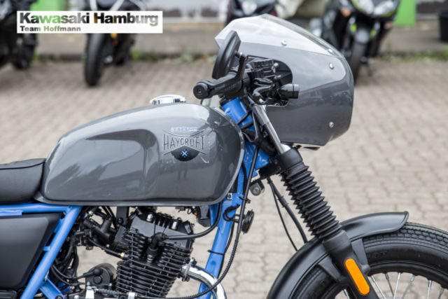 Brixton BX 125 Haycroft Die sportliche BX 125 Haycroft ist ein sogenanntes Half Fairing-Modell, also mit aerodynamisch verkleideter Front im klassischen Stil. Die Sportlichkeit wird mit verlegten Fußrasten und verstellbaren Dämpfern unterstrichen. Das nach einer Straße im Londoner Stadtteil Brixton benannte Sondermodell ist auf 444 Stück limitiert. Daten: Motortyp: 1 Zylinder, 4-Takt, luftgekühlt Hubraum: 124 cm Max. Leistung: 8,3 kW @ 9.000 rpm Zündung: ECU Bremsen vorne/hinten: Scheibe/Scheibe Leermasse: 134 kg Länge: 1.900 mm Breite: 730 mm Höhe: 1.135 mm Verbrauch: 2,7 l/100km CO2-Emissionen: 62 g/km Sie können Ihr Traummotorrad bei uns auch günstig mieten. http://motorradzentrum-hamburg.de/pages/vermietung.php Probefahrten auf allen Modellen möglich 3 Jahre Garantie bei allen Gebrauchtfahrzeugen!! Bundesweiter Zulassungsdienst Bundesweiter Versand ab 99, - Drosselung auf 35 oder 72 KW möglich (bauartbedingt) Gerne nehmen wir Ihr Fahrzeuge in Zahlung Finanzierungen ohne Anzahlung sind möglich Wir kaufen an: Transporter, Pkw, Motorräder, Roller Motorradvermietung Unser Team freut sich auf Ihren Besuch, und berät sie gerne Unsere Öffnungszeiten: März - September: Mo.- Fr. 09:00 bis 19.00 Uhr Sa. 10:00 bis 16.00 Uhr Oktober - Februar: Mo.- Fr. 09:00 bis 18.00 Uhr Sa. 10:00 bis 16.00 Uhr Irrtümer, Zwischenverkauf und Änderungen vorbehalten. Kawasaki Hamburg Stellenangebote: Der Name Kawasaki steht für eine traditionsreiche Weltmarke mit einzigartigem Image, führend in fortschrittlicher Technologie und zukunftsweisendem Design. Ein Motorrad von Kawasaki ist immer Ausdruck eines besonderen Lebensstils. Zur Verstärkung und zum Ausbau unseres leistungsstarken Verkaufs- und Werkstattteams suchen wir zum nächstmöglichen Termin eine/n Zweiradmechaniker Motorrad m/w mehr... Motorradverkäufer m/w mehr...