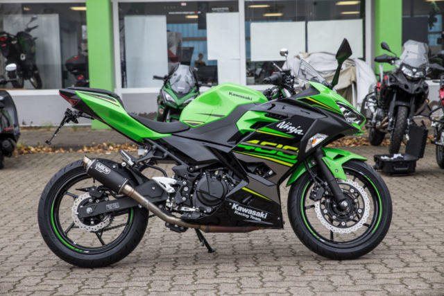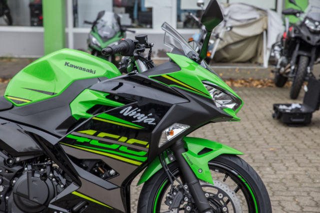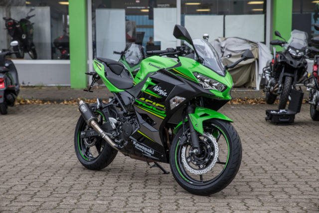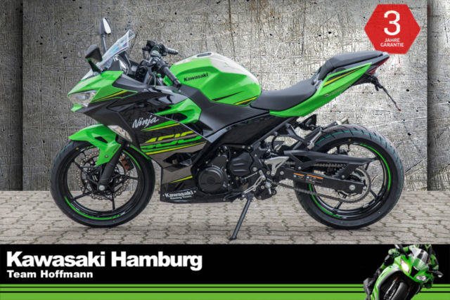 Du kannst mich auch günstig Mieten. 3 Tage ab 99,- Euro, 7 Tage ab 199,- Euro Ninja 400, mit ARROW Sportauspuff, geiler Sound !!! kleiner Kennzeichenhalter LED Blinker hinten Kawasaki ist stolz, ein neues sportliches Modell in einem umkämpften Segment präsentieren zu können. Im neuen scharfen Ninja-Styling bietet die neue Ninja 400 mehr Leistung als ihr Vorgänger. Ein völlig neuer Motor und ein leichteres Fahrwerk machen dies möglich. Aber wie ihr Vorgänger, die Ninja 300, bringt diese neue Ninja viel mehr mit als gute Leistungswerte. Mit der hochwertigen Ausstattung, dem guten Handling und der entspannten und trotzdem sportlichen Sitzposition macht die Ninja 400 einfach Spaß. Sie können Ihr Traummotorrad bei uns auch günstig mieten. http://motorradzentrum-hamburg.de/pages/vermietung.php Probefahrten auf allen Modellen möglich Bundesweiter Zulassungsdienst Bundesweiter Versand ab 99, - Gerne nehmen wir Ihr Fahrzeuge in Zahlung Finanzierungen ohne Anzahlung sind möglich Motorradvermietung Unser Team freut sich auf Ihren Besuch, und berät sie gerne Unsere Öffnungszeiten: Mo.- Fr. 10:00 bis 18.00 Uhr Sa. 10:00 bis 16.00 Uhr oder nach Vereinbarung Kawasaki Hamburg