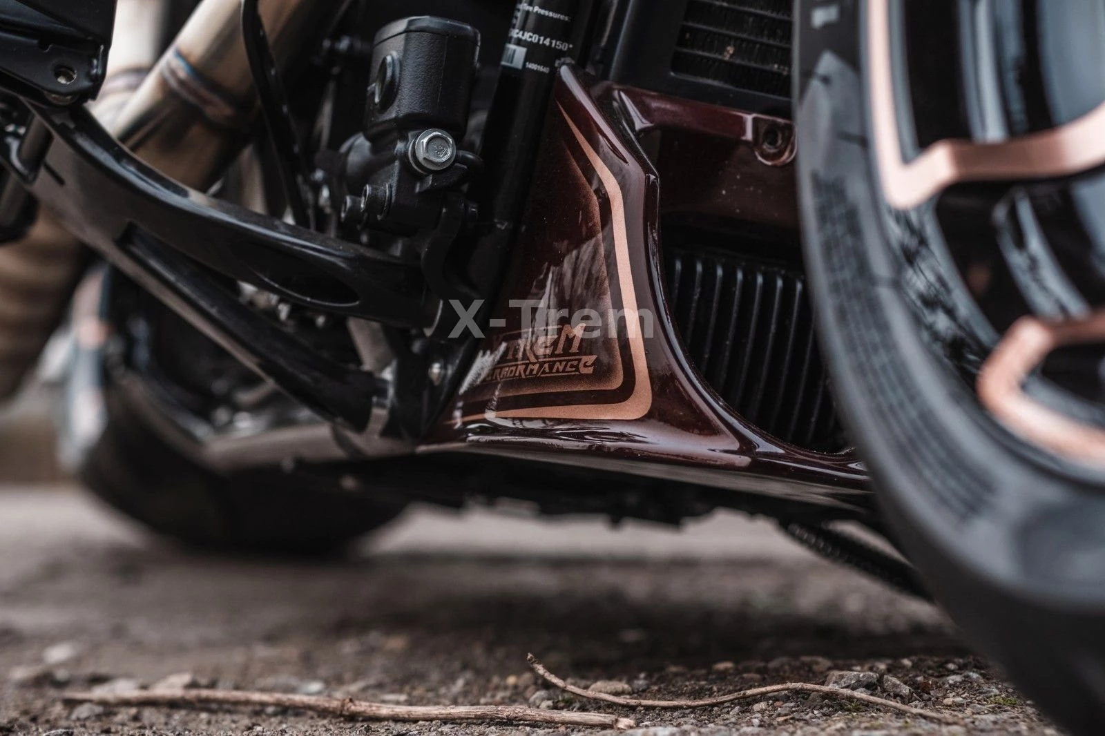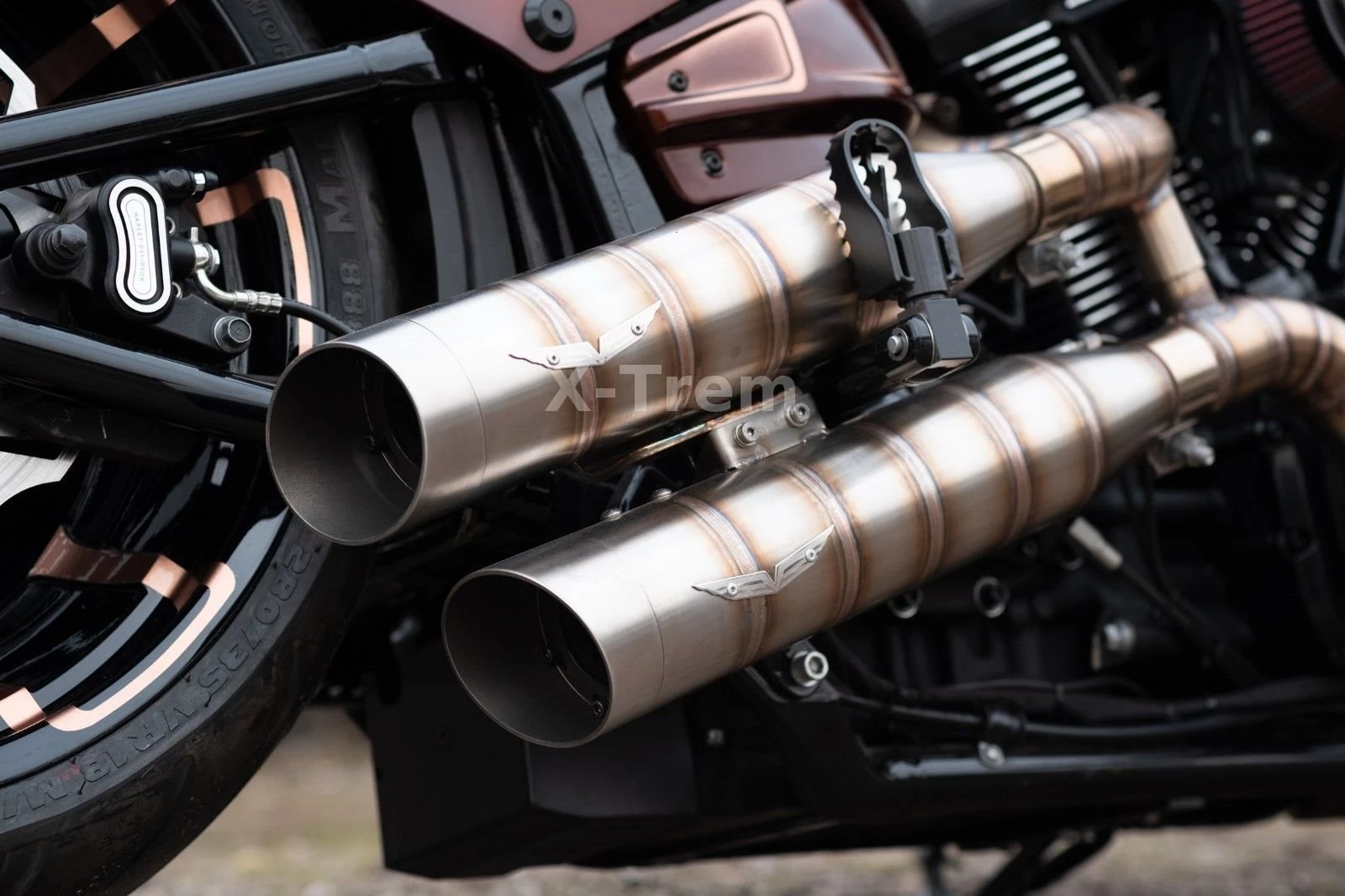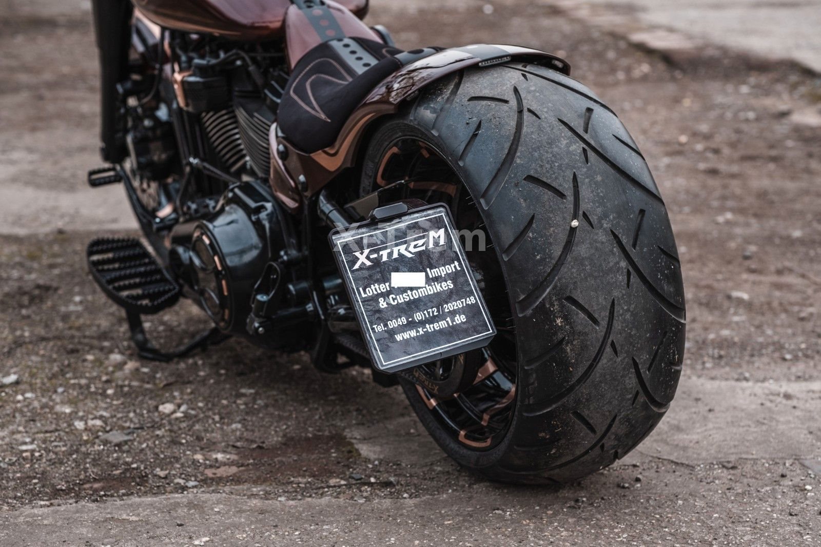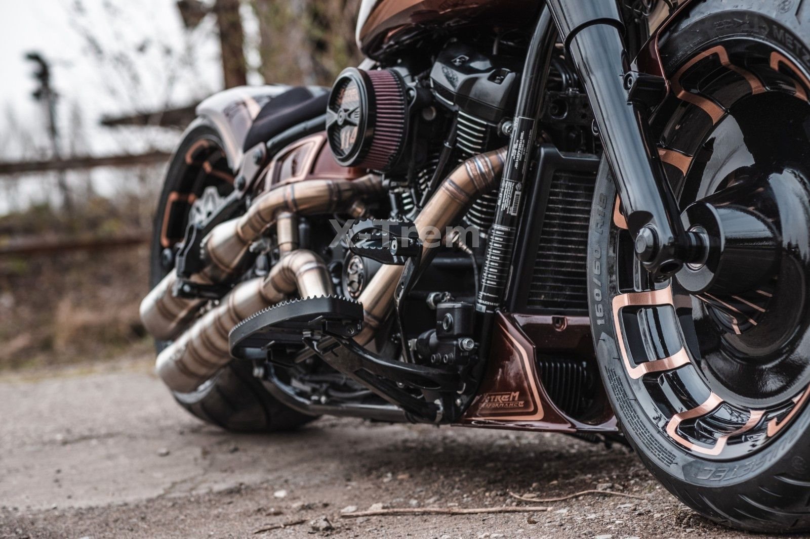 - Vorderrad HD 4,5 x 18 mit 160/60-18 schwarz hochglanz mit bronzenen Designapplikationen