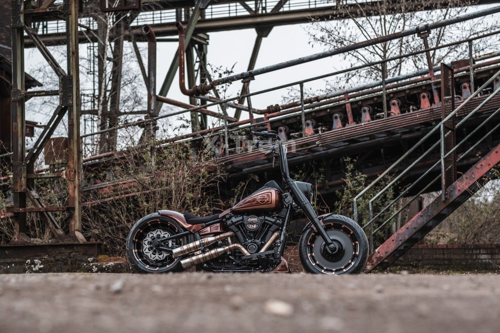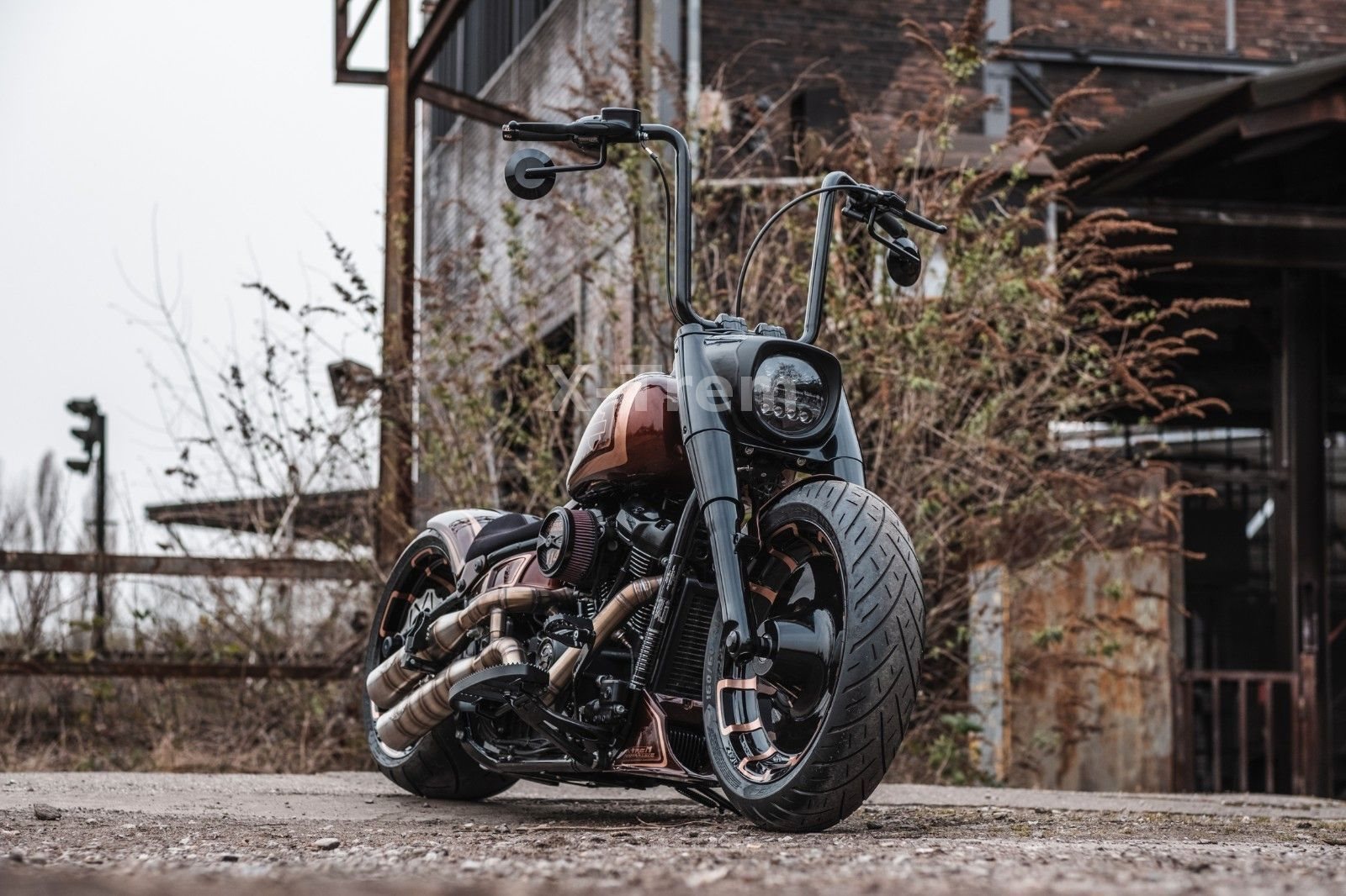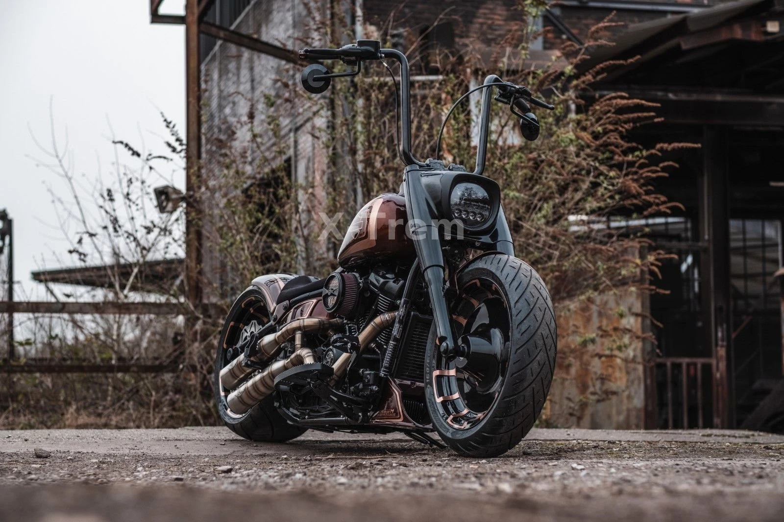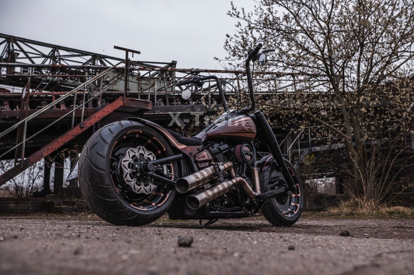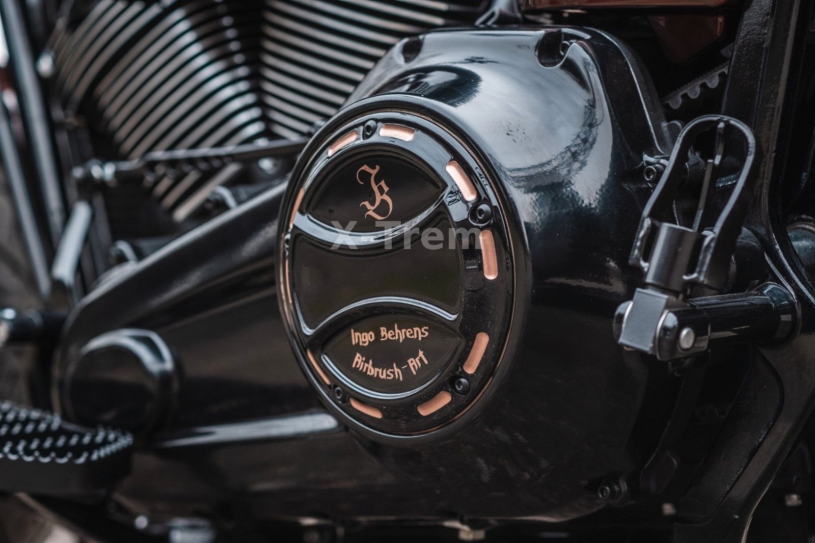 - Vorderrad HD 4,5 x 18 mit 160/60-18 schwarz hochglanz mit bronzenen Designapplikationen
