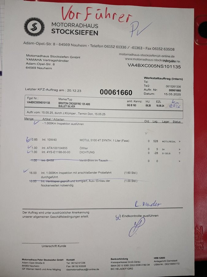 - Inspektion neu ausgeführt bei Auslieferung