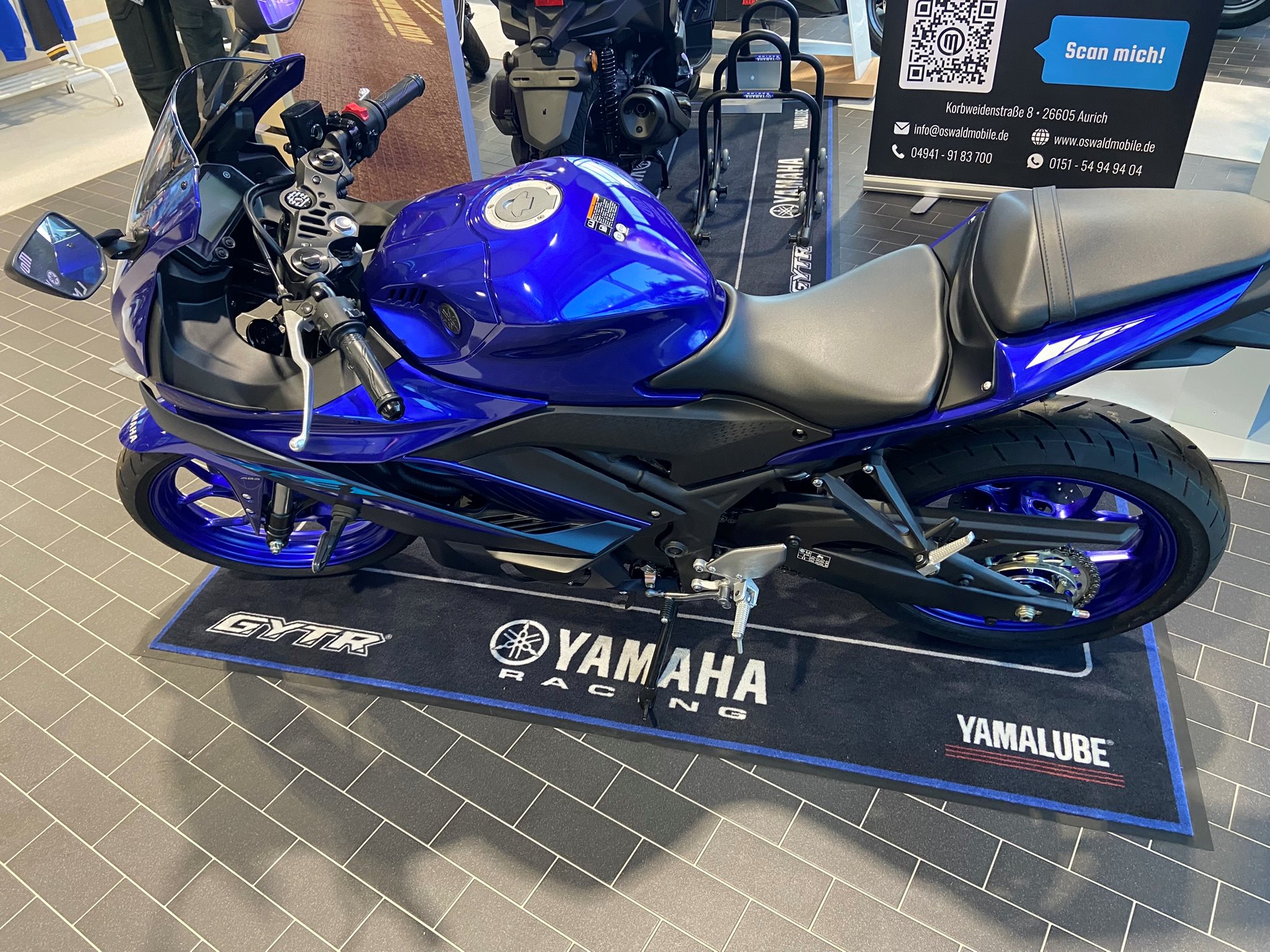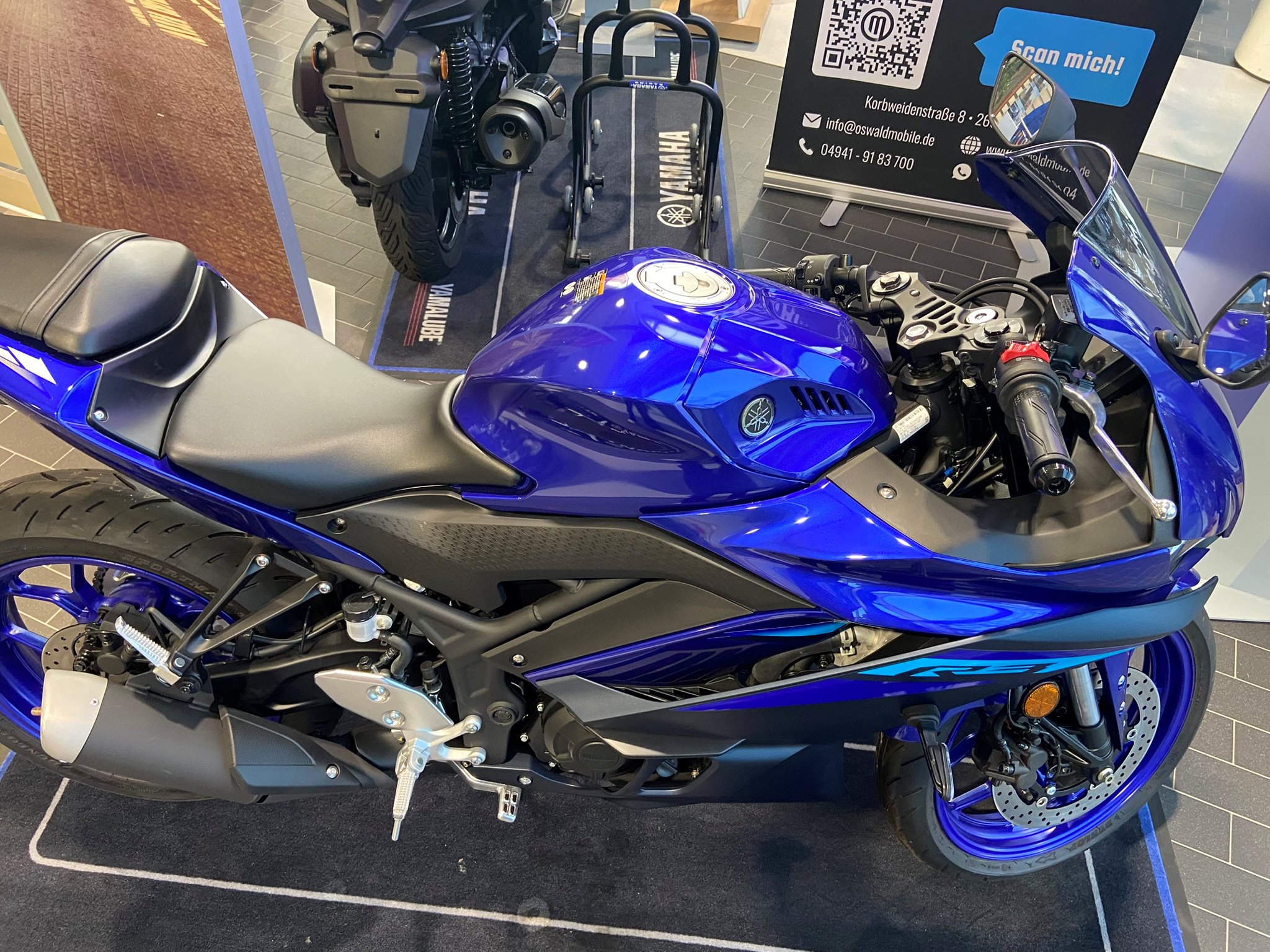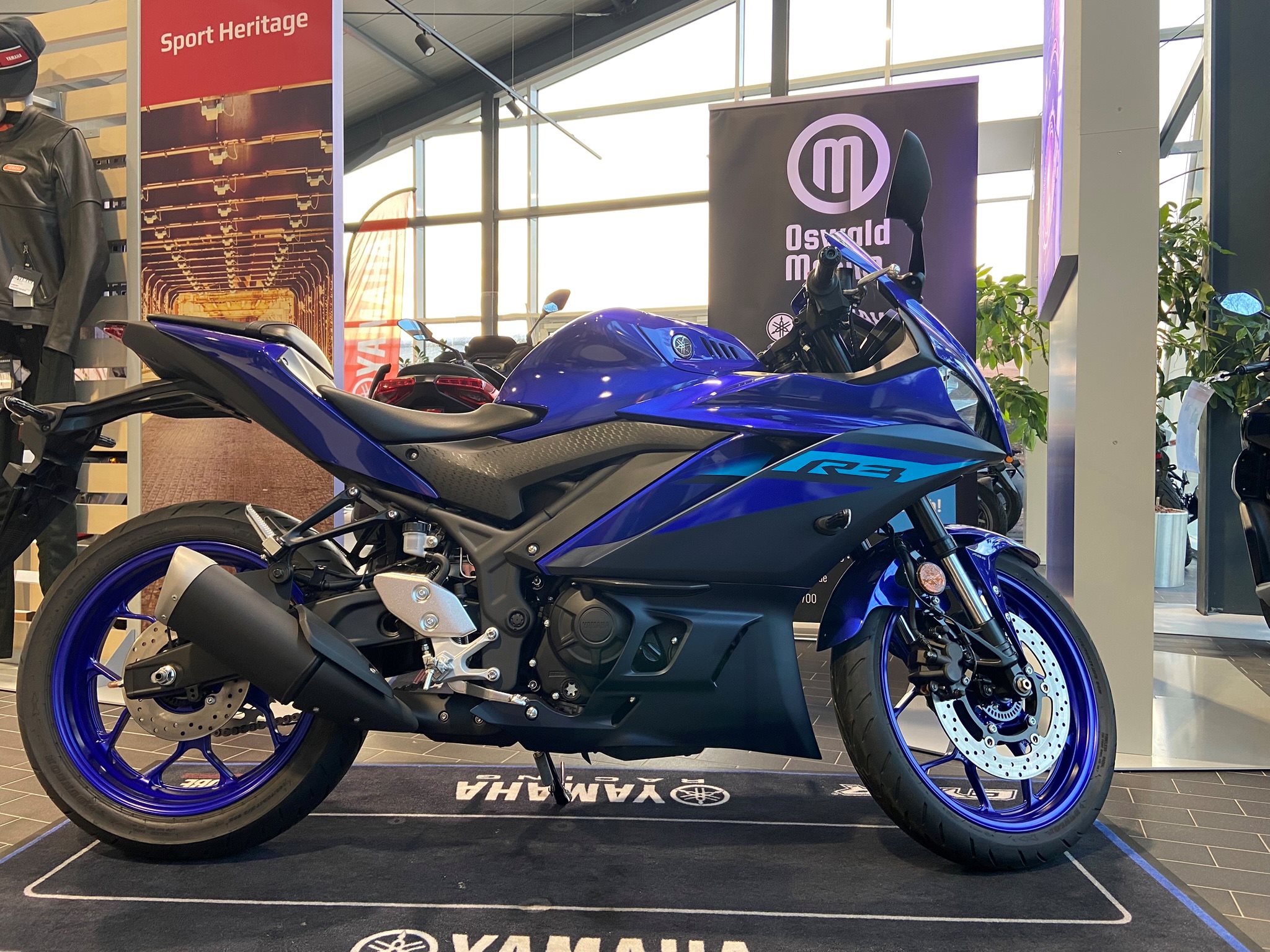 Die Yamaha YZFR3 2024 ist eine kompakte SupersportStraßenmaschine, die sportliches Design, hochwertige Technik und zugängliche Leistung vereint. Inspiriert von Yamahas MotoGPMaschine YZRM1 besticht sie durch fließende, aerodynamische Verkleidungen und eine ergonomische Sitzposition, die sowohl sportliches Fahren als auch Alltagstauglichkeit ermöglicht.