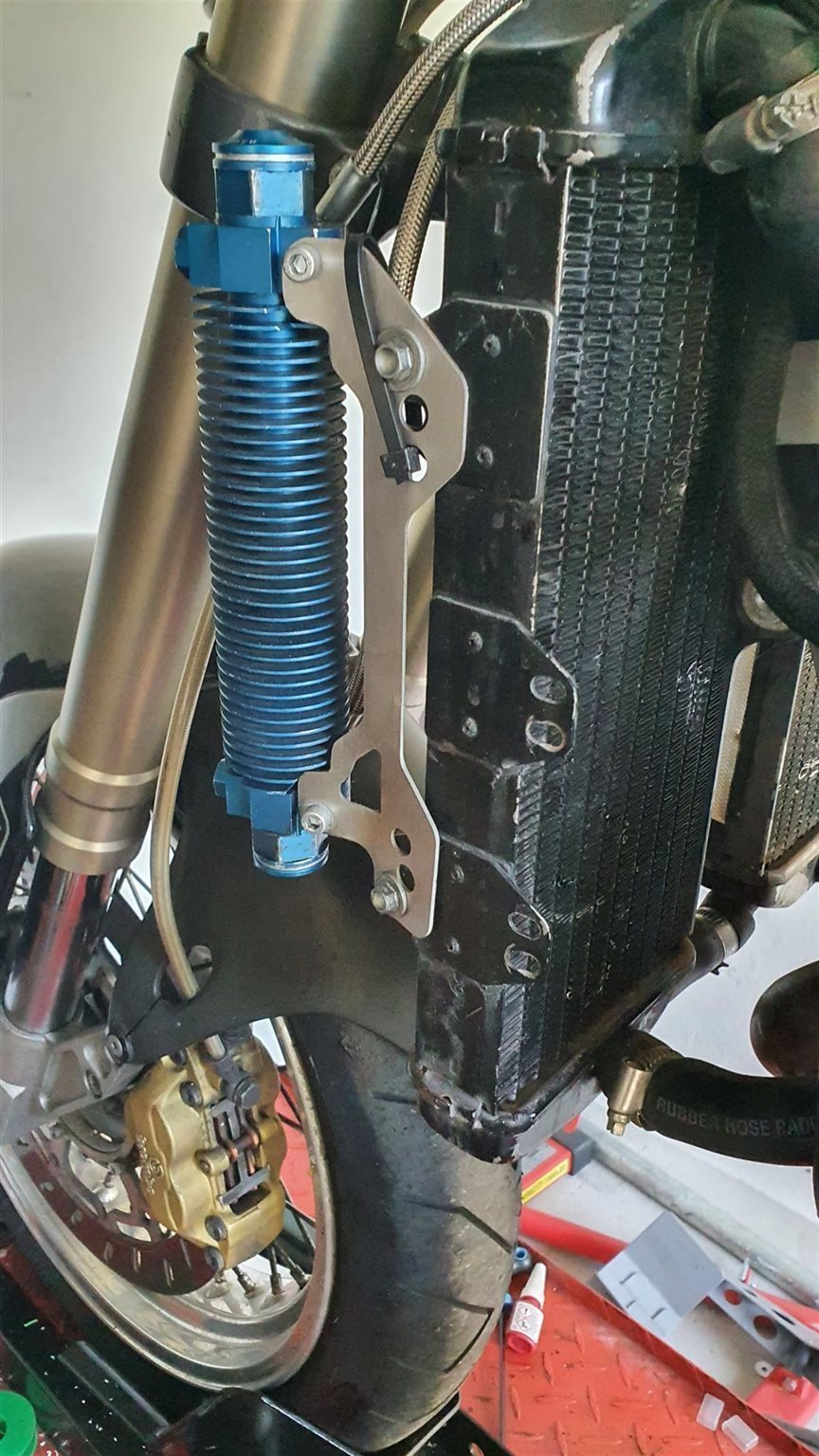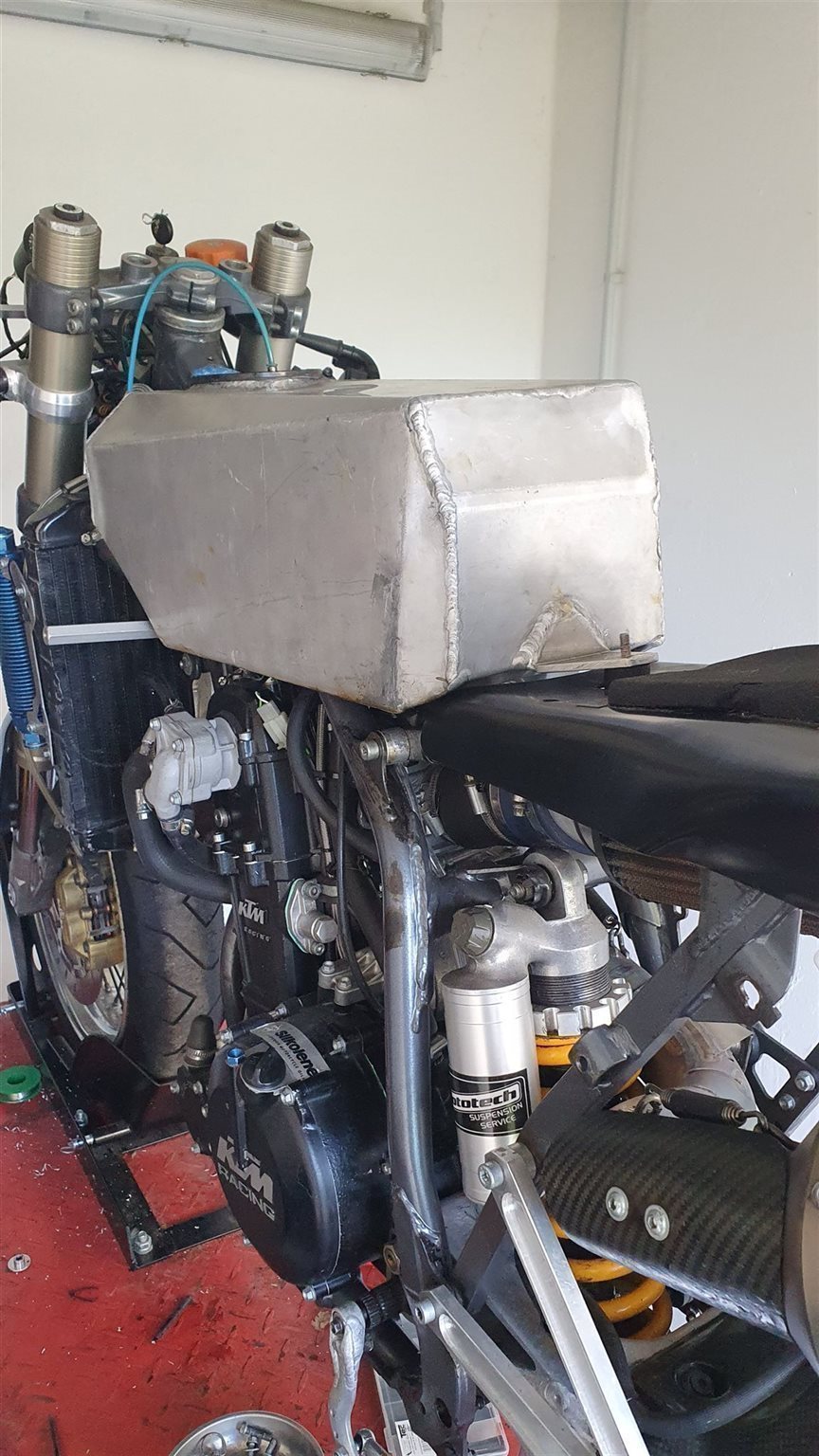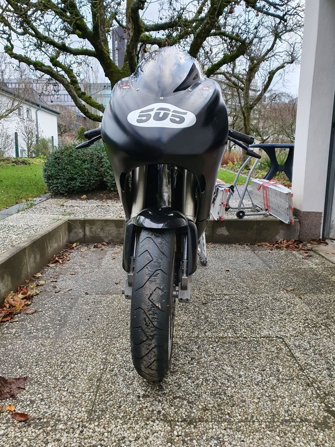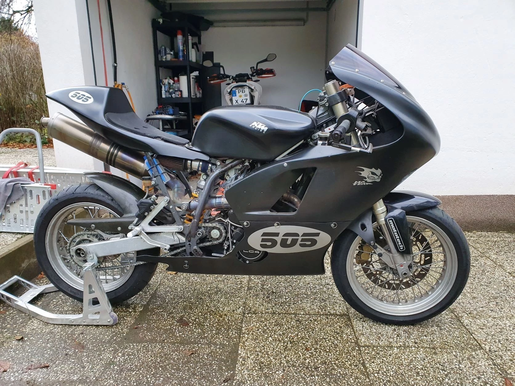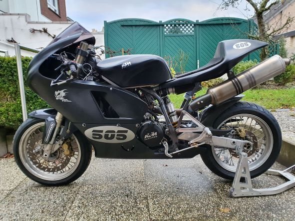Fahrwerksumbau wurde bei Rüdiger Krenz, mototech.de, vorgenommen, Vorbild für die Eckdaten des Fahrwerks war die RC8R. Aluminium Tank. Radialbremspumpe von Magua, neuer Vergaser von Mikuni, Elektrostarter, Akrapovic Titan Auspuff komplett aus Supermoto WM original (mit 2 verschiedenen DB Eatern). Gefräste Fußrasten, Schnellverschlüsse für Verkleidung. Ich habe das Fahrzeug 1995 neu erworben und bin Erstbesitzer (Dokumente Brief etc. vorhanden). Die Umbauten sind professionell erledigt worden. Motorrad ist wie ich alt, aber nicht krank, weswegen es einen neuen Besitzer braucht der auf der Rennstrecke richtig Motorrad fahren lernen will.