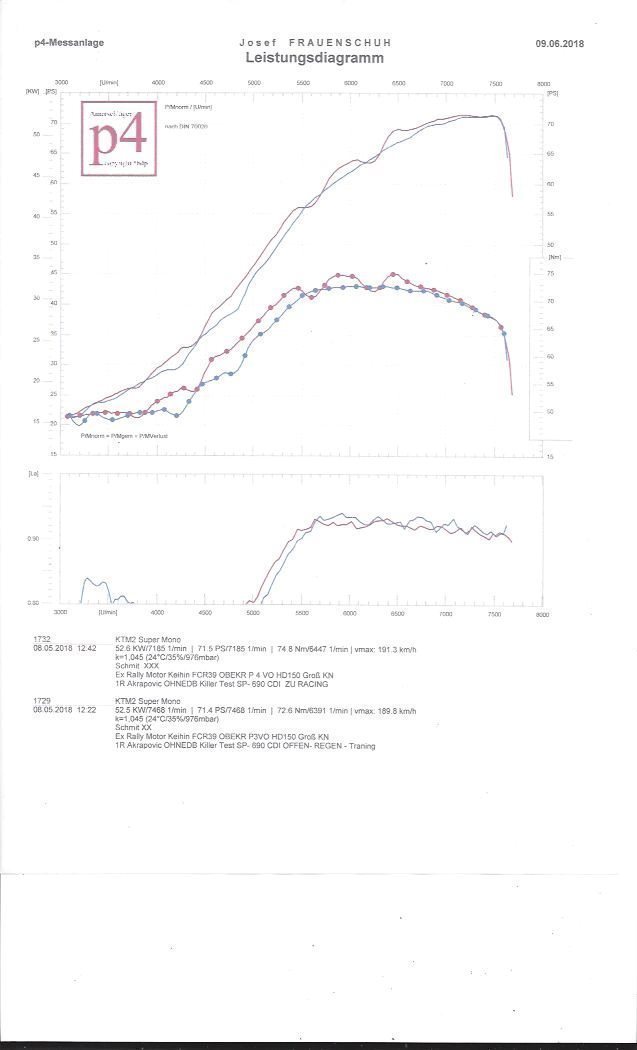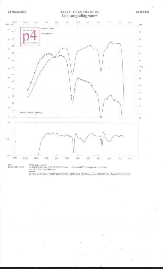 Das Motorrad steht trocken in meiner gut belüfteten Garage. Es ist nach dem Motoraufbau durch Frauenschuh Josef nur in Brünn bei der Übergabe ein paar Runden bewegt worden. Der verbaute Motor ist ein original Werk Rally Motor der 660 Paris Dakar, also ein rechter Werksmotor mit verstärkter Kupplung. Auf dem Prüfstand sind 74 PS angetreten. Messprotokoll vorhanden.