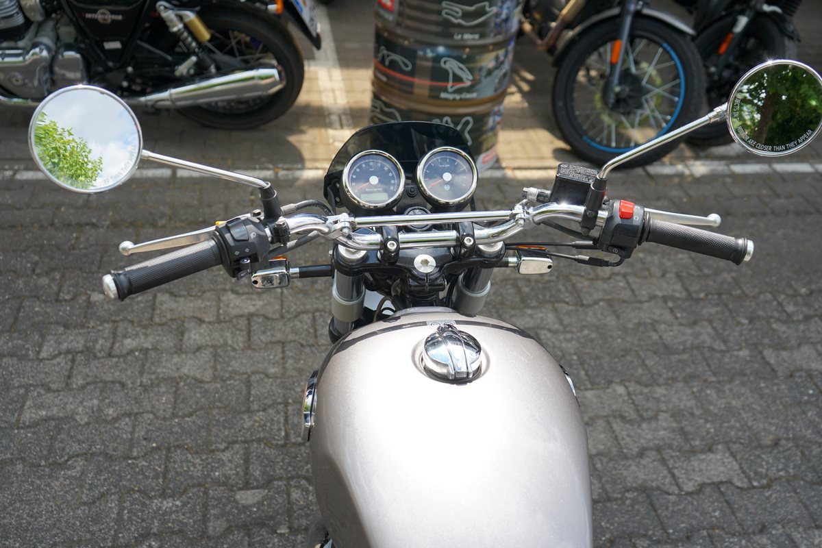 - kultivierter Motor entspannte Sitzposition gute Bremsen klassische Rundinstrumente authentische Retro-Optik