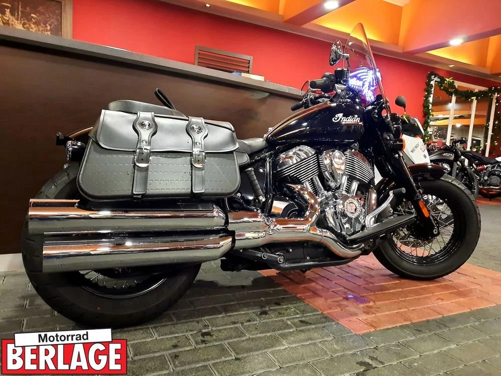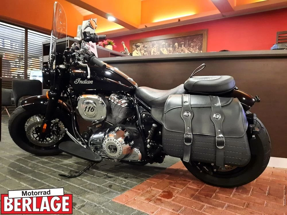 Indians Super Chief mit verchromten Fahrzeugteilen, Lederpacktaschen, Windschild und Trittbrettern.