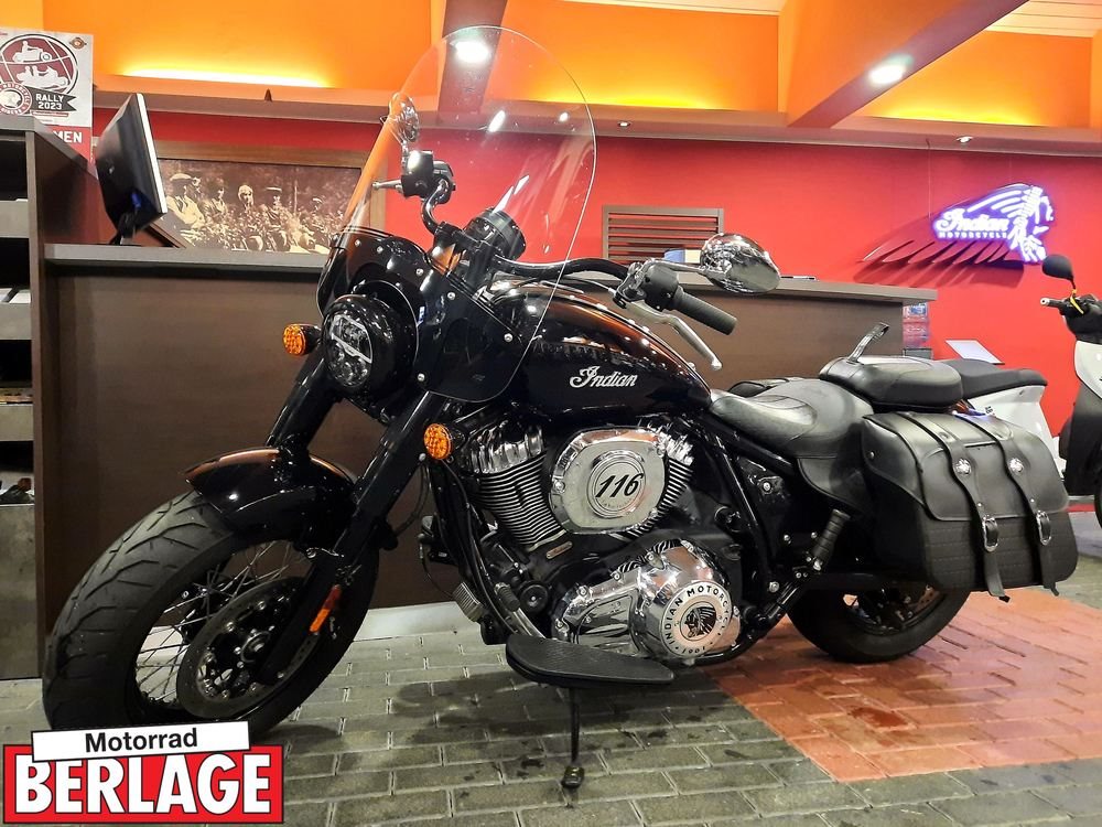 Indians Super Chief mit verchromten Fahrzeugteilen, Lederpacktaschen, Windschild und Trittbrettern.