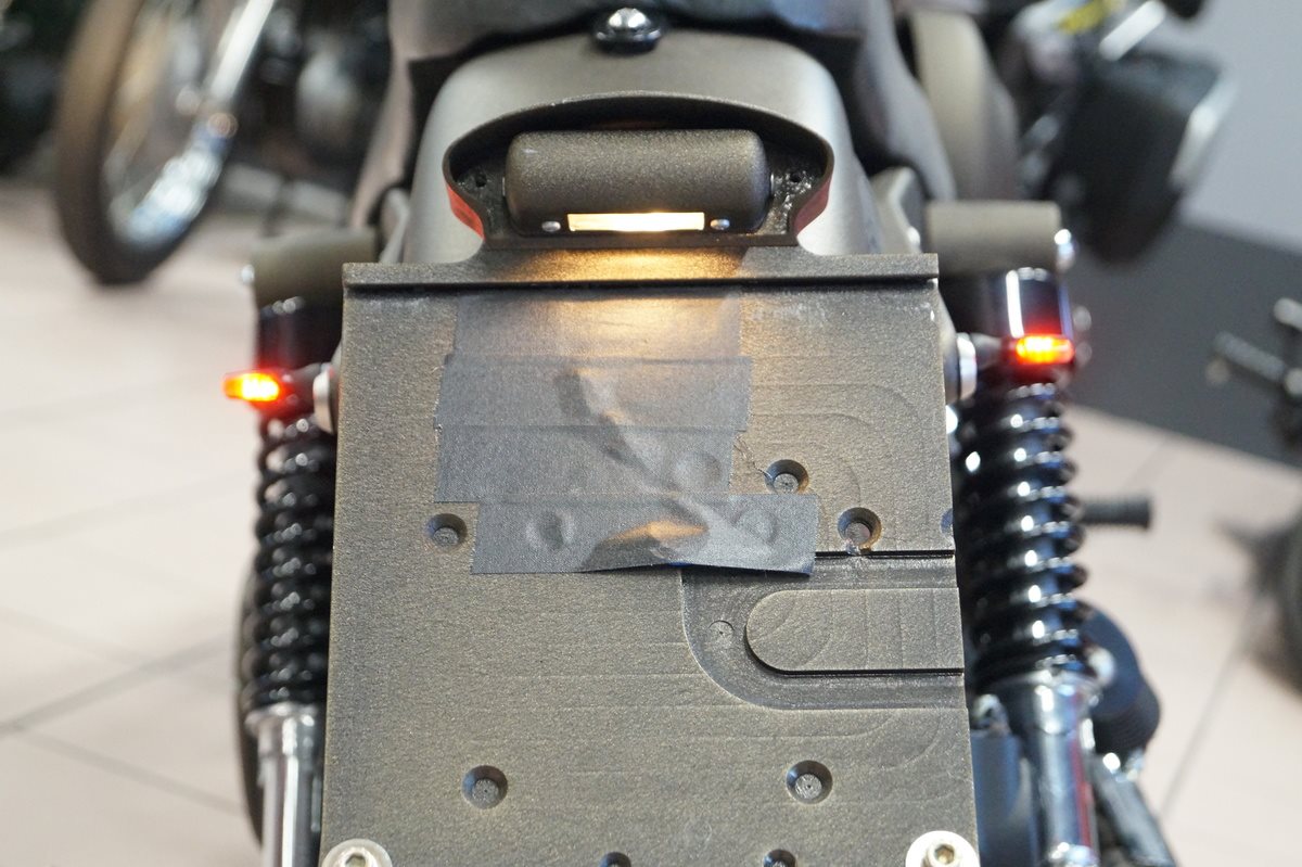 - Sonderlackierung, Sondersitzbankbezug, kombinierte Blinker-/ Rückleuchten, vorverlegte Fussrasten, offener BERTEL-Luftfilter, SE-Auspufftöpfe, HD-Griffe