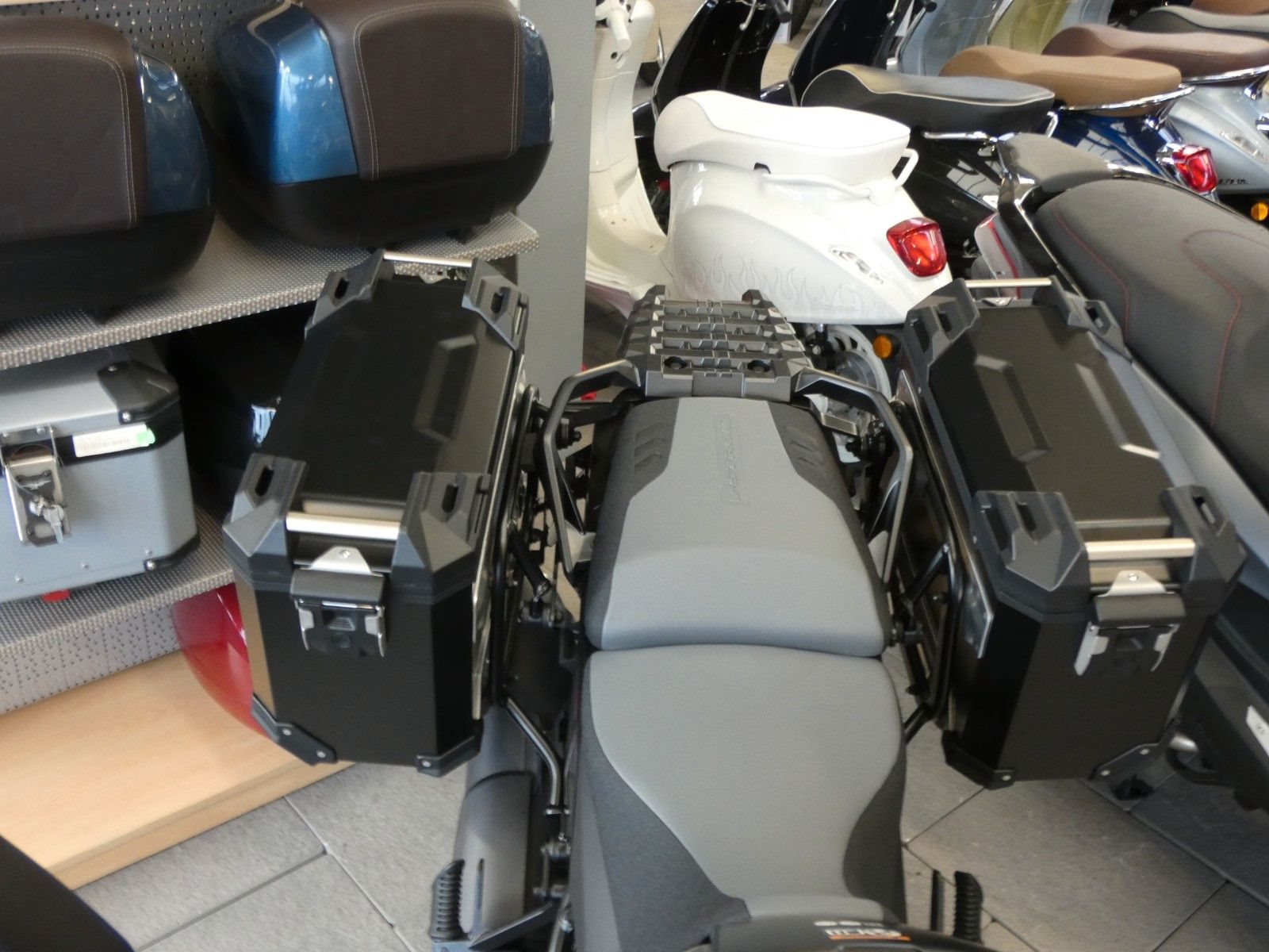 Ganz in Schwarz gehalten, ist die hoch geländegängige V-Strom 1050DE Black Edition perfekt für Offroadreisen ausgestattet. Serienmäßig an Bord des Editionsmodells sind ein Kofferträger und ein Satz Alukoffer inklusive Schlössern. Für souveräne Fahrzeugbeherrschung abseits des Asphalts sorgen robuste Enduro-Fußrasten.