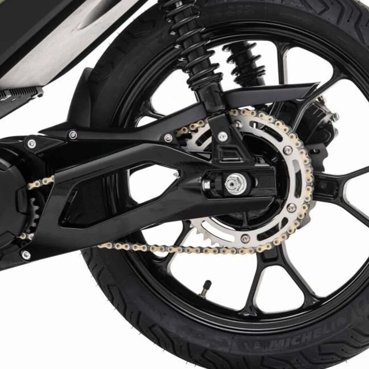Ausgestattet mit einem leistungsstarken Elektromotor mit 3 kw und 45 Km/h, kombiniert mit einer herausnehmbare 2,2 kWh Batterie, beide Komponenten stammen von der italenischen Firma Dell?Órto.