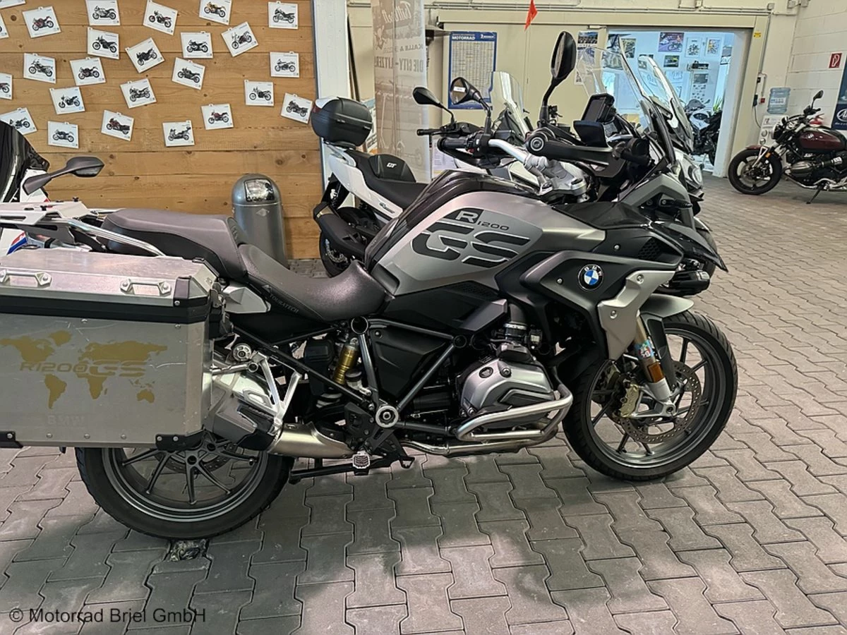 Gebrauchtfahrzeug Das hier angebotene Motorrad hat 1 Vorbesitzer. Unsere Fahrzeuge bekommen vor Auslieferung die anstehende aktuelle Inspektion. Tüv(HU AU)für min. 12 Monate. Die Verschleissteile werden geprüft und bei Restlaufzeit unter 50% erneuert. Das Fahrzeug ist laut Vorbesitzer unfallfrei. Zusatzausstattung: - Touring-Paket - Dynamic ESA - Keyless Ride - Vorbereitung für Navigationsgerät - Temporegelung - Kofferhalter links und rechts - Dynamic-Paket - LED Scheinwerfer - Schaltassistent Pro - Fahrmodi Pro - LED Blinkleuchten weiß - ABS Pro - R1200 GS 'Exclusive' - Antriebsstrang schwarz - Hauptrahmen: Achatgrau metallic matt, Bremssättel: Gold - DTC (Dynamic Traction Control) - Tagfahrlicht - Hill Start Control - Bordcomputer Pro - Tieferlegung ab Werk - ABS Pro - Connectivity - Intelligenter Notruf - Fahrersitz niedrig - Comfort-Paket - Abgasanlage verchromt - Heizbare Griffe - RDC - Handschutz - Alukoffersatz BMW Zwischenzeitlicher Verkauf und Irrtümer bei Ausstattung (Schrift und Bild) sind vorbehalten. Bilder können nicht enthaltendes Deko + Sonderzubehör aus der Ausstellung enthalten. Die aufgelisteten Sonderausstattungen ab Werk sind am Fahrzeug verbaut. Versand und Transport sind nicht enthalten. Finanzierungsangebote ab eff. 5,49 % Jahreszins. Die Höhe des eff. Jahreszinssatz ist abhängig von Laufzeit und Anzahlungshöhe. Finanzierungen sind mit und ohne Anzahlung, mit und ohne Abschlussrate möglich. Wir machen Ihnen gerne ein individuell zugeschnittenes Angebot. Inzahlungnahme aller Motorrad-Marken möglich. Rufen sie uns an unter 0203-6001656 1 oder per Mail an : briel@motorrad-briel.de für einen Besichtigungstermin Noch mehr Motorräder - Neu - Vorführer und Jahresmaschinen unter ....moma.motorrad-briel.de.... Versand ab Duisburg deutschlandweit - versicherter Transport direkt vor die Haustüre möglich.