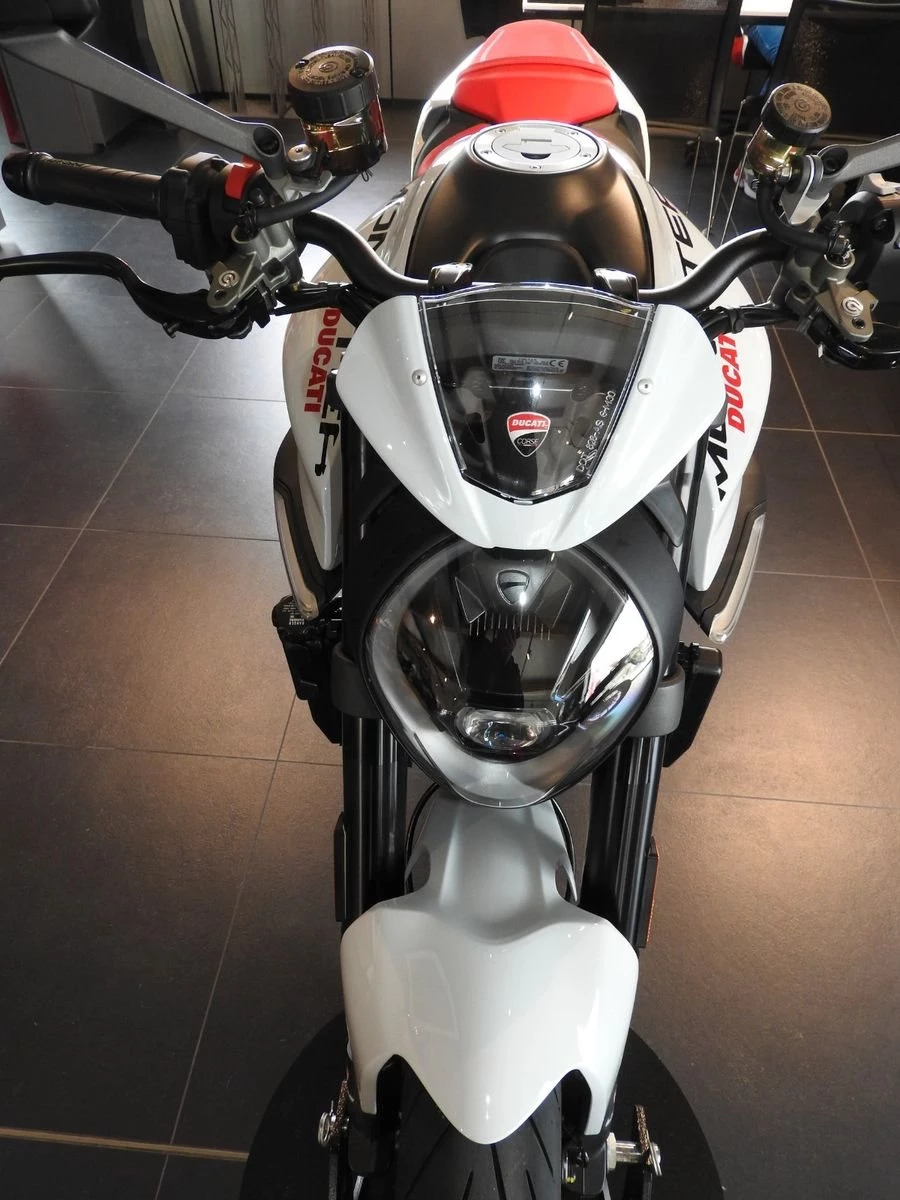 Die Monster ist mit dem Euro-5-zugelassenen 937 cm Testastretta 11°-Motor mit desmodromischer Steuerung ausgestattet. Mit einer Leistung von 111 PS bei 9250 U/min ist der Motor sanft und kontrolliert bei niedrigen Drehzahlen, um den Stadtverkehr ohne Zögern zu bewältigen, aber auch dynamisch bei mittleren und hohen Drehzahlen, für eine mitreißende Leistung in jeder Situation. Sein geringes Gewicht trägt zur Leichtigkeit des Motorrads bei und erhöht die Fahrbarkeit.