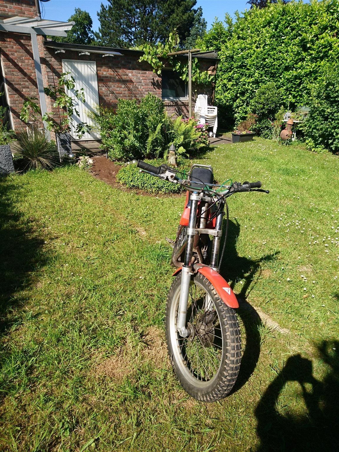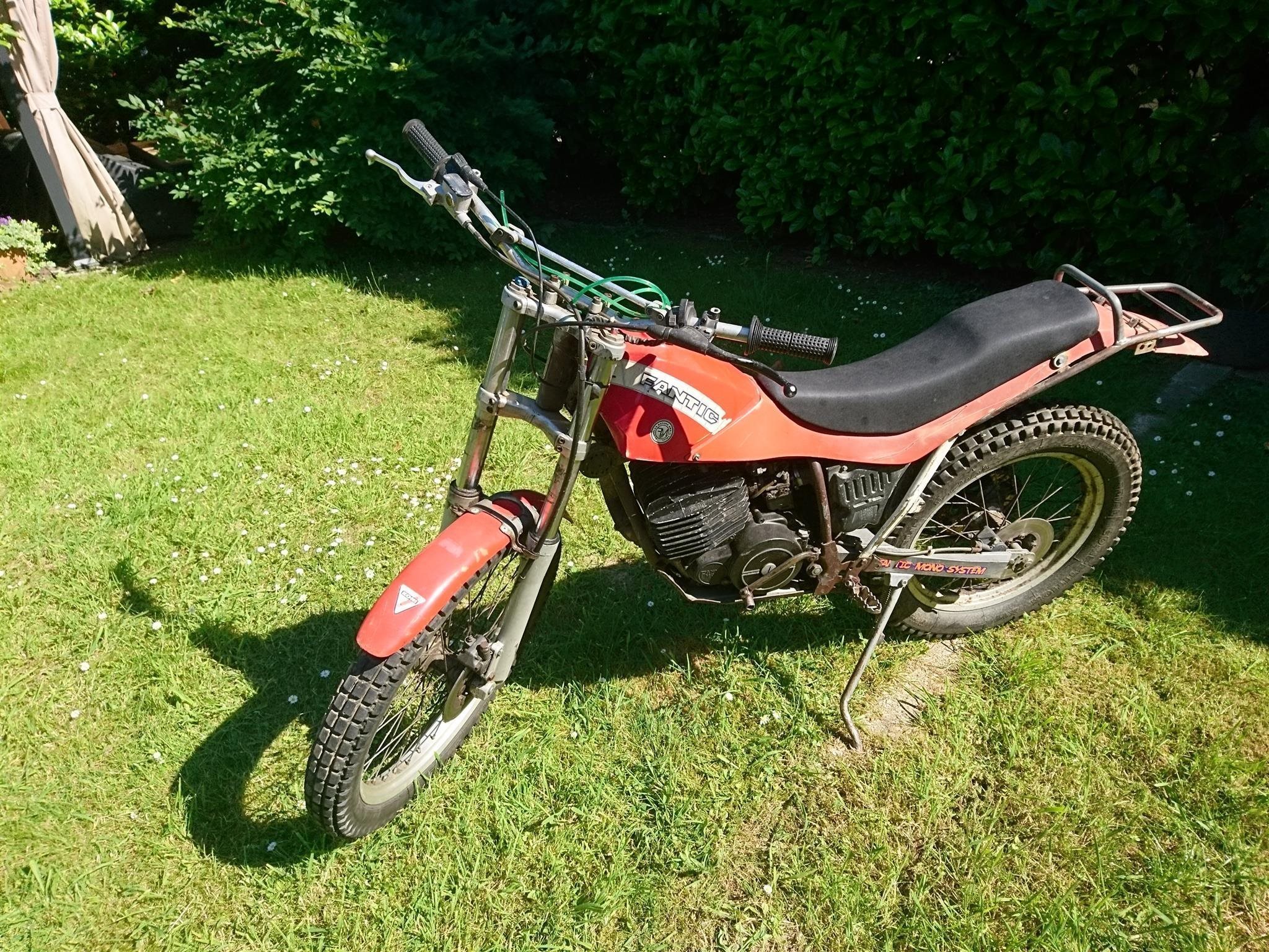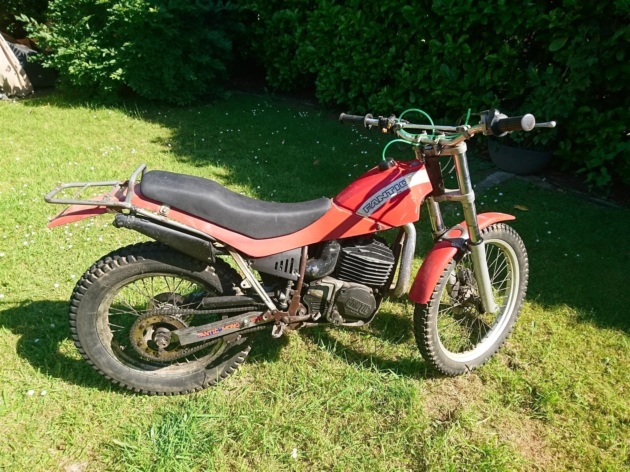 Diese Fantic ist sowohl Trial-Maschine als auch Reiseenduro. Die erste Zeit wurde sie im Gelände benutze. Später aber auch als angemeldete 80iger für den Weg zur Schule.