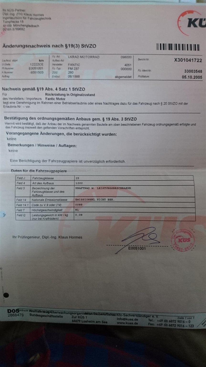 Auch bei uns war sie kurz angemeldet. Unsere Kinder haben auch auf ihr für den Führerschein geübt und in den letzten Jahren wurde sie ab und zu in leichtem Gelände bewegt.