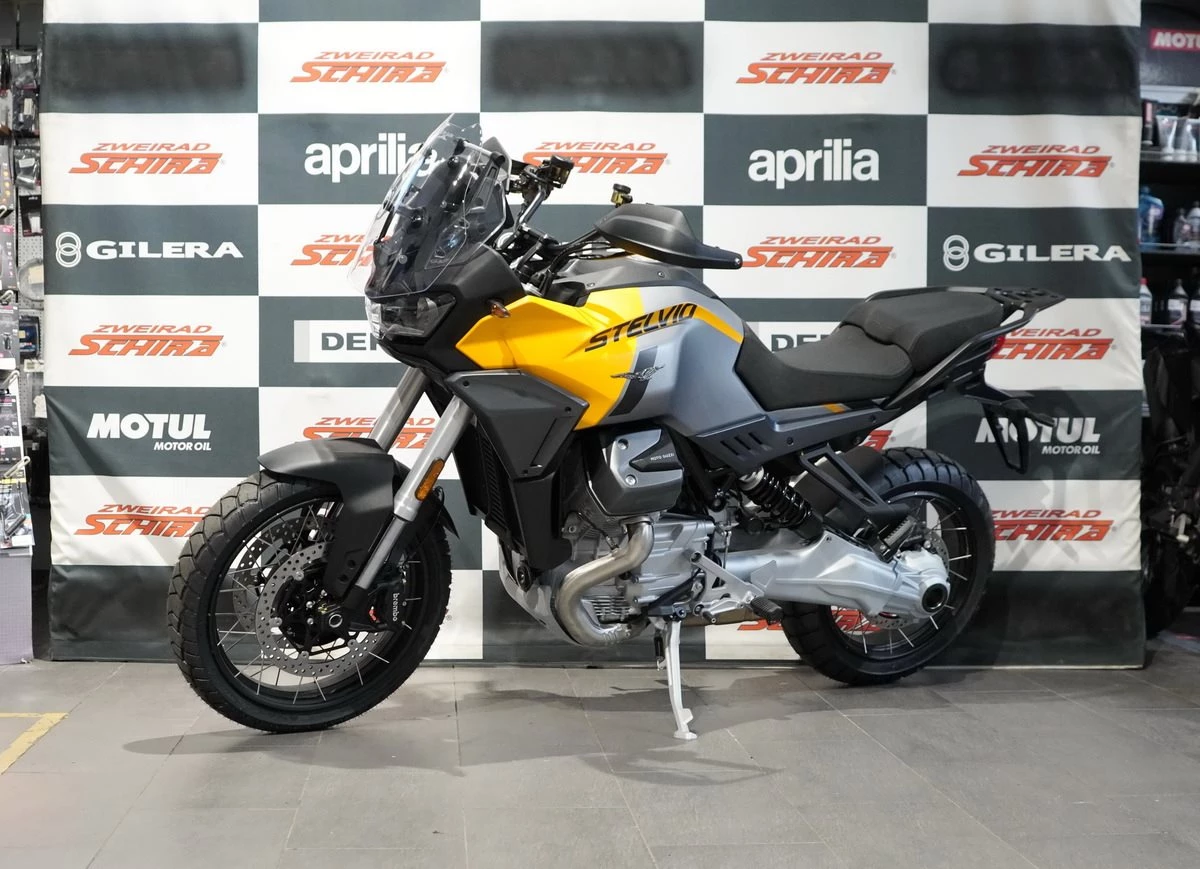 Komfort findet sich in jedem Detail des Stelvio und keine Straße ist tabu, unabhängig von der Beladung. Dank des 19-Zoll-Vorderrads, des 170-mm-Federwegs, der geräumigen Sitzbank, die moderate 830 mm über dem Boden liegt, des elektrisch verstellbaren Windschilds.