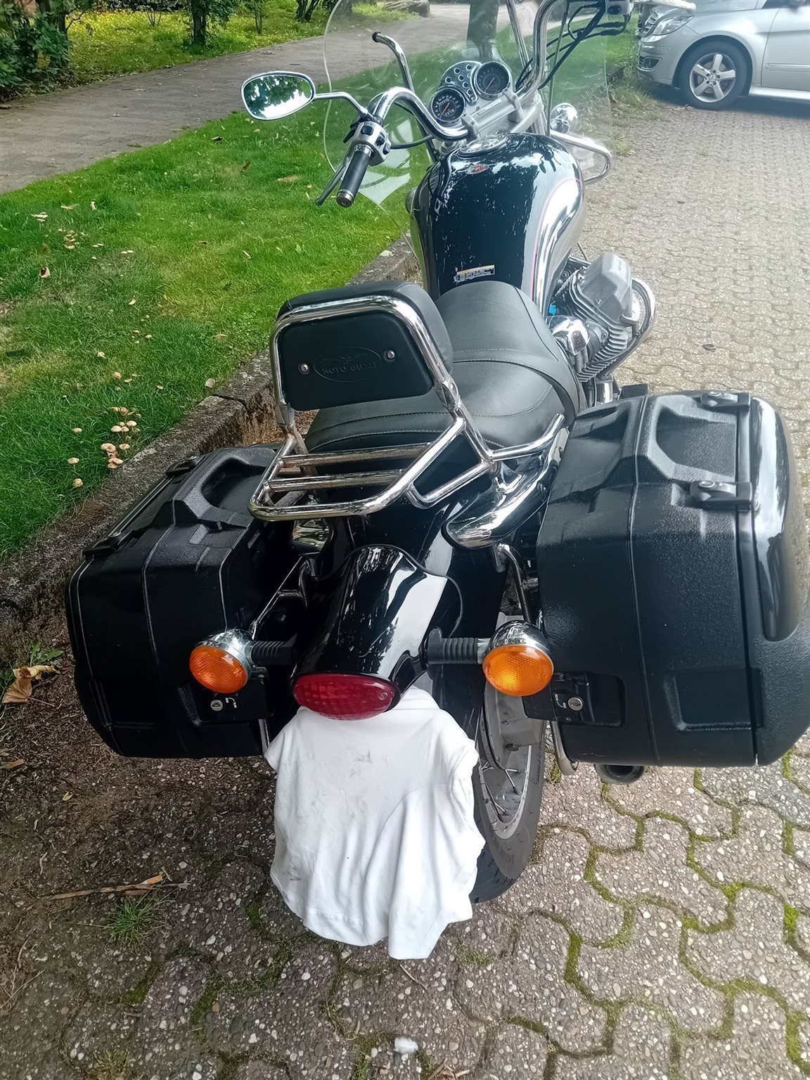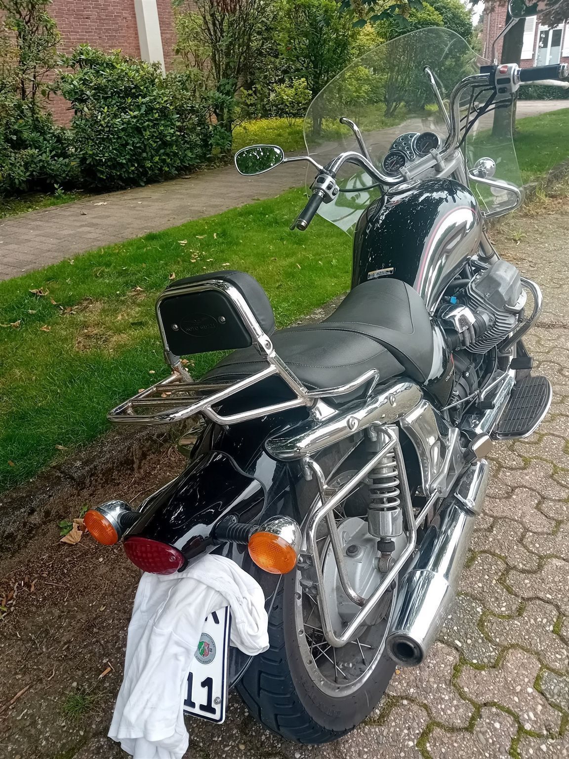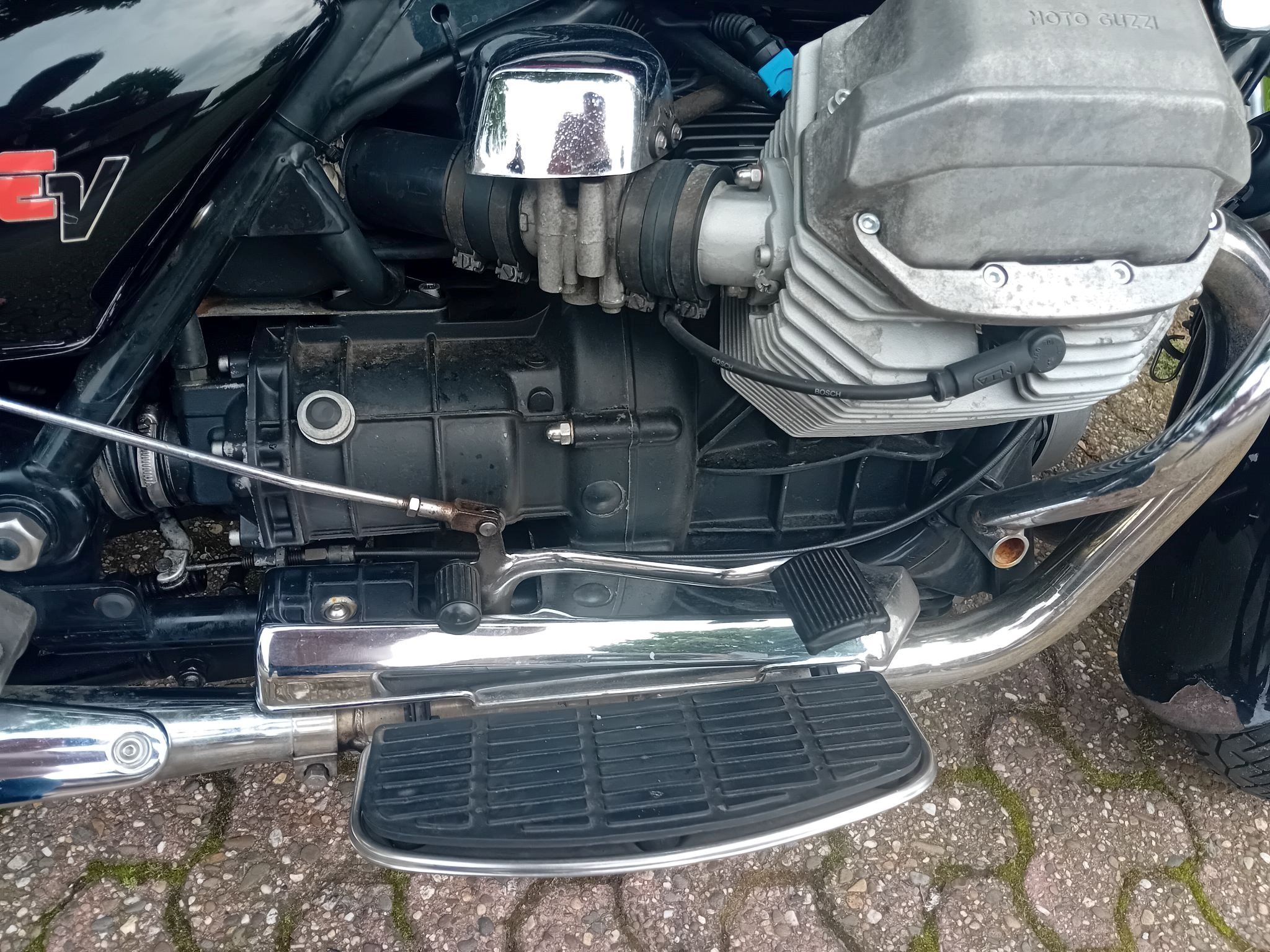 Zugelassene, nach Service und Einbau neuer Batterie bis 07/2026 geTÜVte Guzzi California mit 2 Original Koffern und Windschild steht zum Verkauf. Zweimal innerhalb der Familie weitergegeben, aber für mich als Endsechziger unterdessen ein bisschen zu schwer. (Nicht vollständig gefülltes) Serviceheft, Originalbeschreibung und letzte Werkstattrechnungen sind vorhanden. Die Reifen sind in gutem Zustand, knapp zwei Jahre alt.