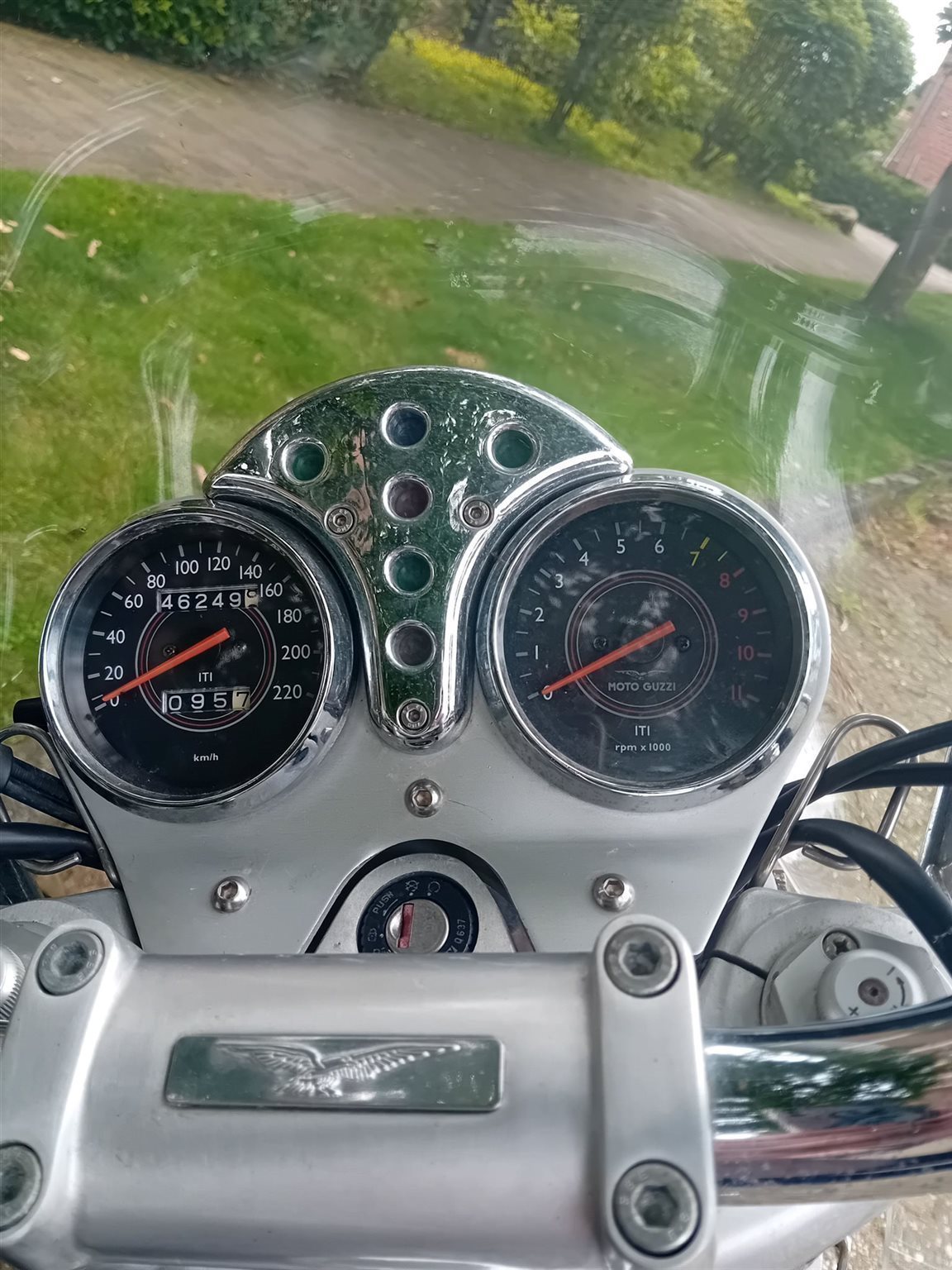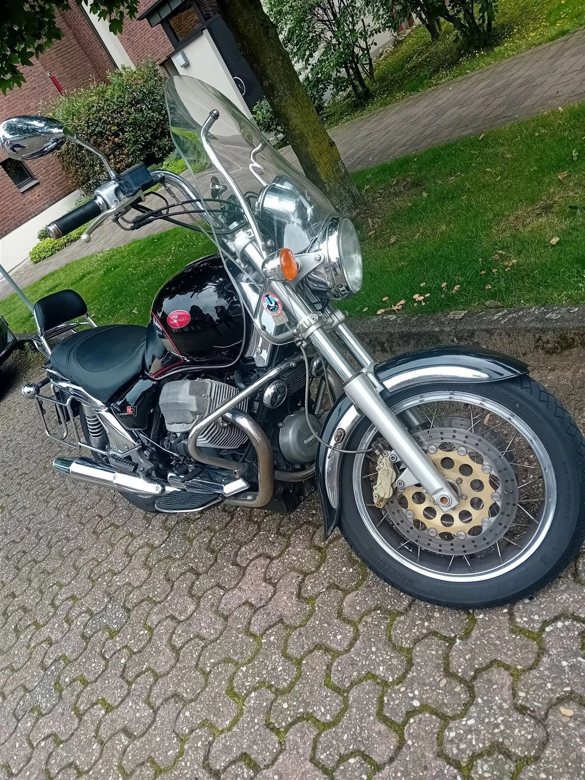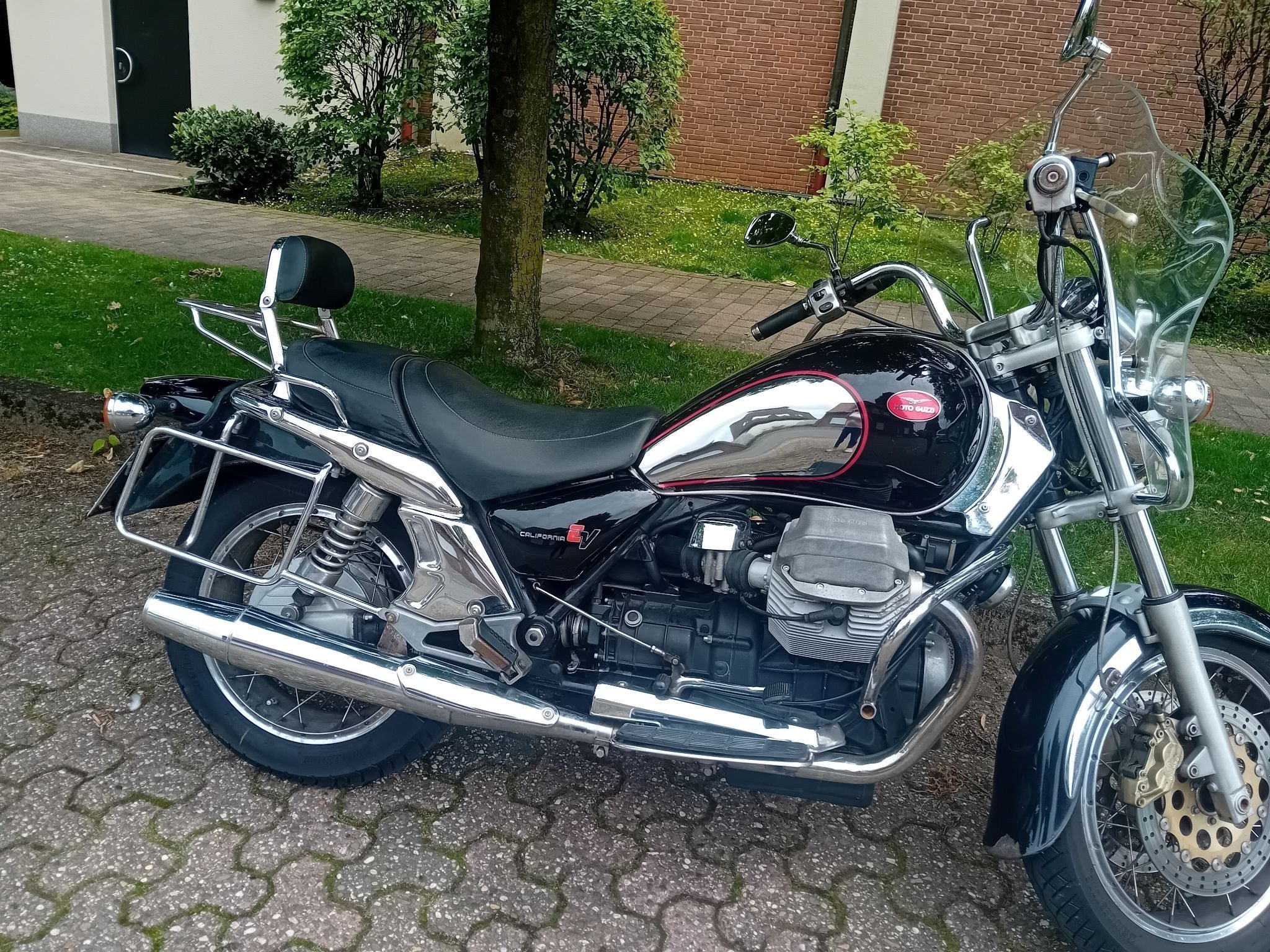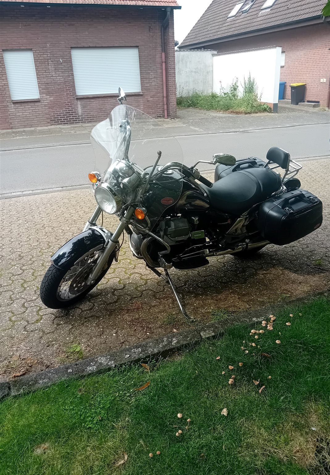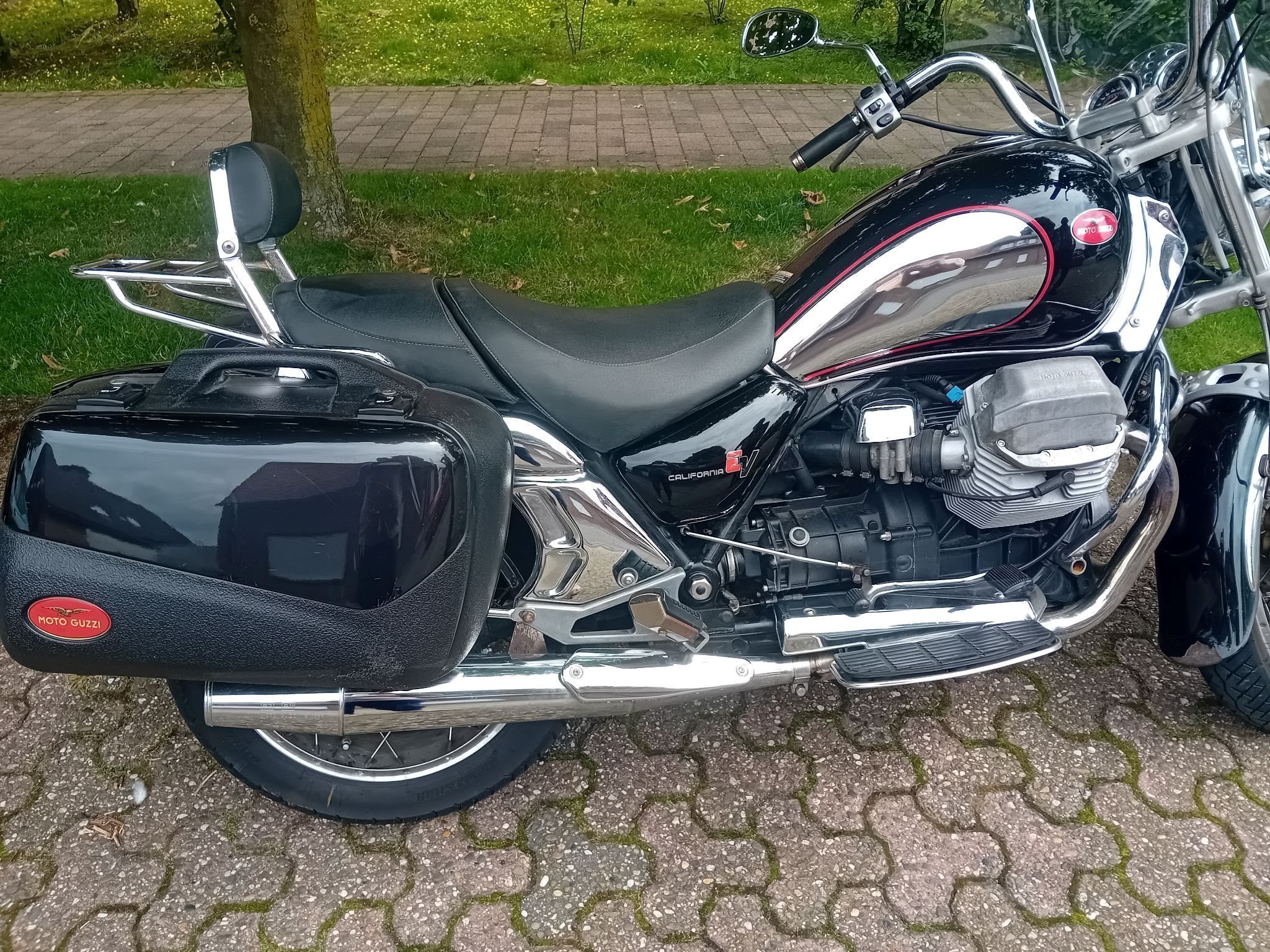 Zugelassene, nach Service und Einbau neuer Batterie letztes Jahr geTÜVte Guzzi California mit 2 Original Koffern und Windschild steht zum Verkauf. Zweimal innerhalb der Familie weitergegeben, aber für mich als Endsechziger unterdessen ein bisschen zu schwer. (Nicht vollständig gefülltes) Serviceheft, Originalbeschreibung und letzte Werkstattrechnungen sind vorhanden. Die Reifen sind in gutem Zustand, knapp zwei Jahre alt.