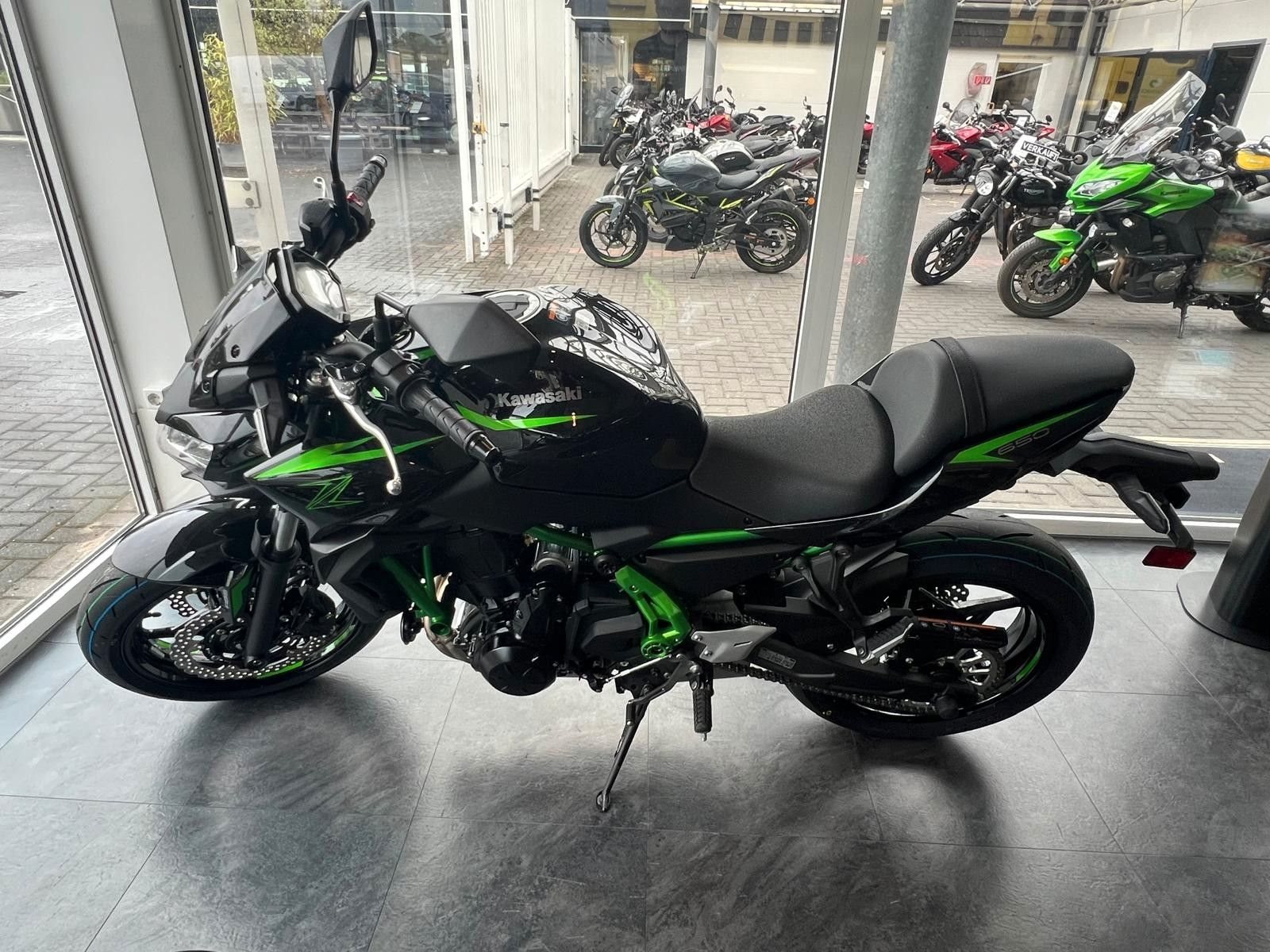 Die neue Kawasaki Z650 MY25 in der schönen Farbe Metallic Spark Black / Green.