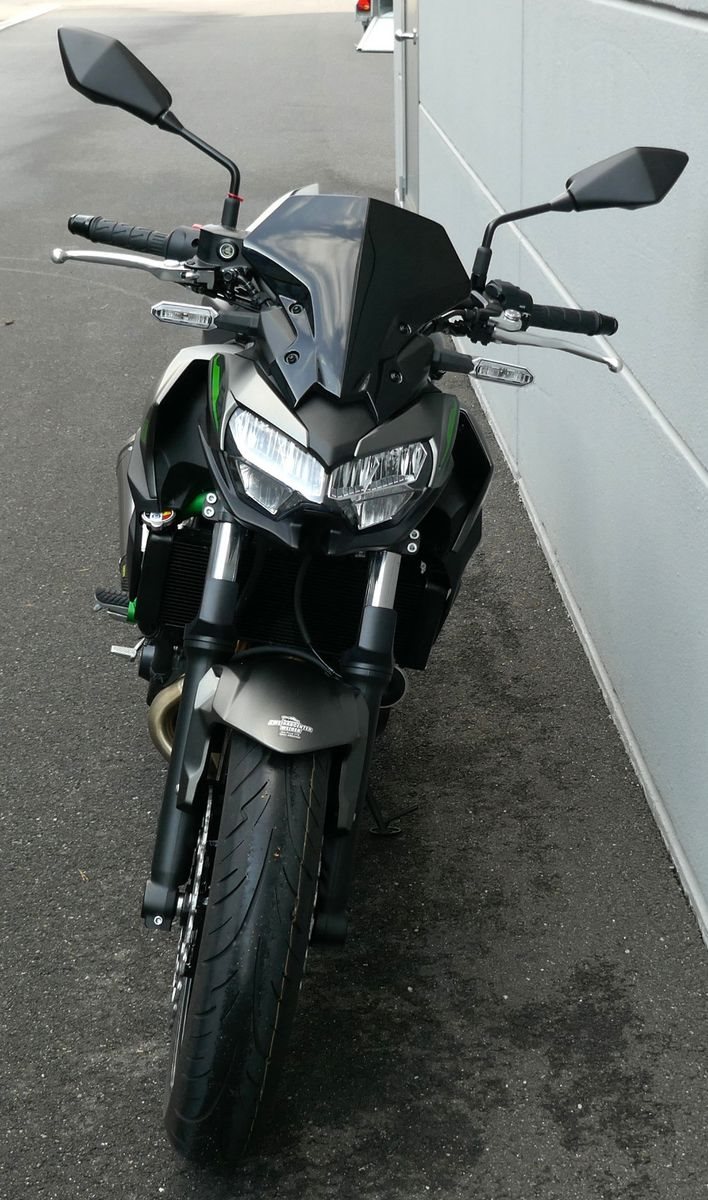 Die Front bestehend aus LED-Scheinwerfer und Verkleidung der Z650 ist kantiger und kompakter und wirkt durch farbige Elemente leichter. Der scharfe Kinnspoiler, die neue Scheibe und die nach vorne gerichteten Linien orientieren sich am Sugomi-Design.