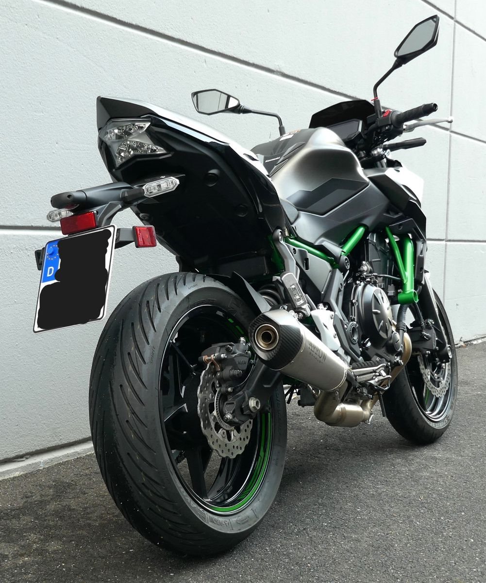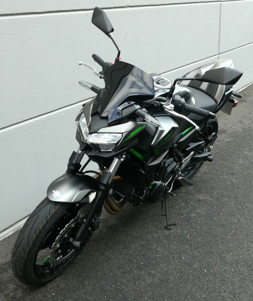 Die Front bestehend aus LED-Scheinwerfer und Verkleidung der Z650 ist kantiger und kompakter und wirkt durch farbige Elemente leichter. Der scharfe Kinnspoiler, die neue Scheibe und die nach vorne gerichteten Linien orientieren sich am Sugomi-Design.