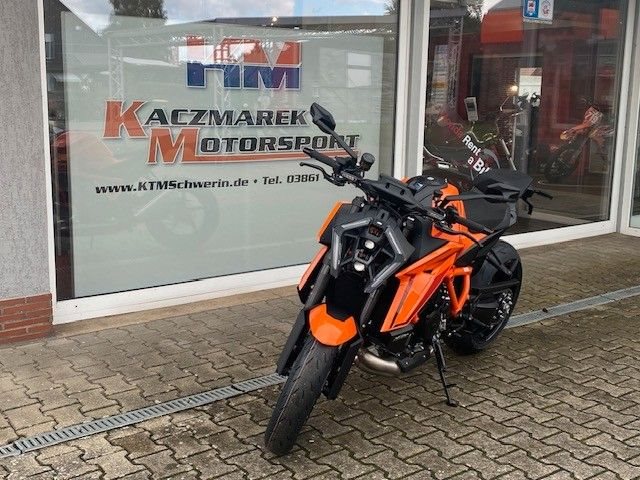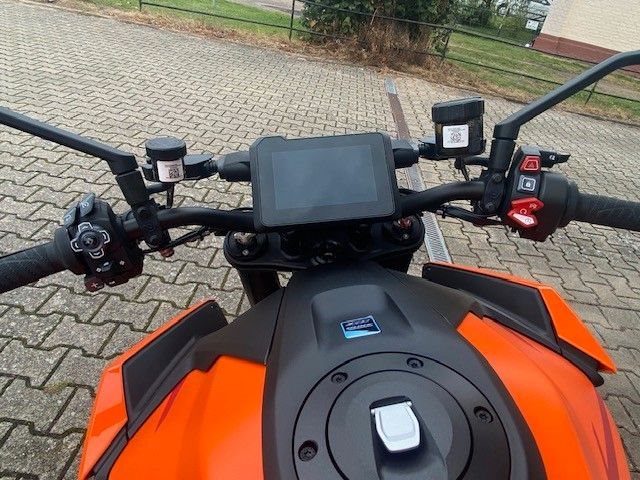 Damit man nicht dauernd auf dem Hinterrad durch die Landschaft fährt, bewirken neue Tankspoiler und zusätzliche Winglets mehr Anpressdruck am Vorderrad. Der überarbeitete Kraftstofftank fasst nun 17,5 Liter und damit 1,5 Liter mehr als sein Vorgänger. Diese Veränderung erhöht nicht nur die Reichweite auf etwa 300 km, sondern erfüllt auch eine ergonomische Funktion.Die neue Scheinwerfereinheit wiegt fast 700 g weniger als die Vorgängerversion und wirkt nahezu außerirdisch. Neu ist auch die Coming Home-Lichtfunktion. Der Scheinwerfer bleibt nach dem Ausschalten der Zündung noch für eine gewisse Dauer eingeschaltet; hilfreich beim Abstellen des Motorrads in dunkler Umgebungen.In Sachen Elektronik debütiert die 1390er Super Duke mit einem überarbeiteten Performance- und Track-Fahrmodus, komplett mit Laptimer- und Telemetrie-Statistiken, sowie einer optionalen Motorbremssteuerung .