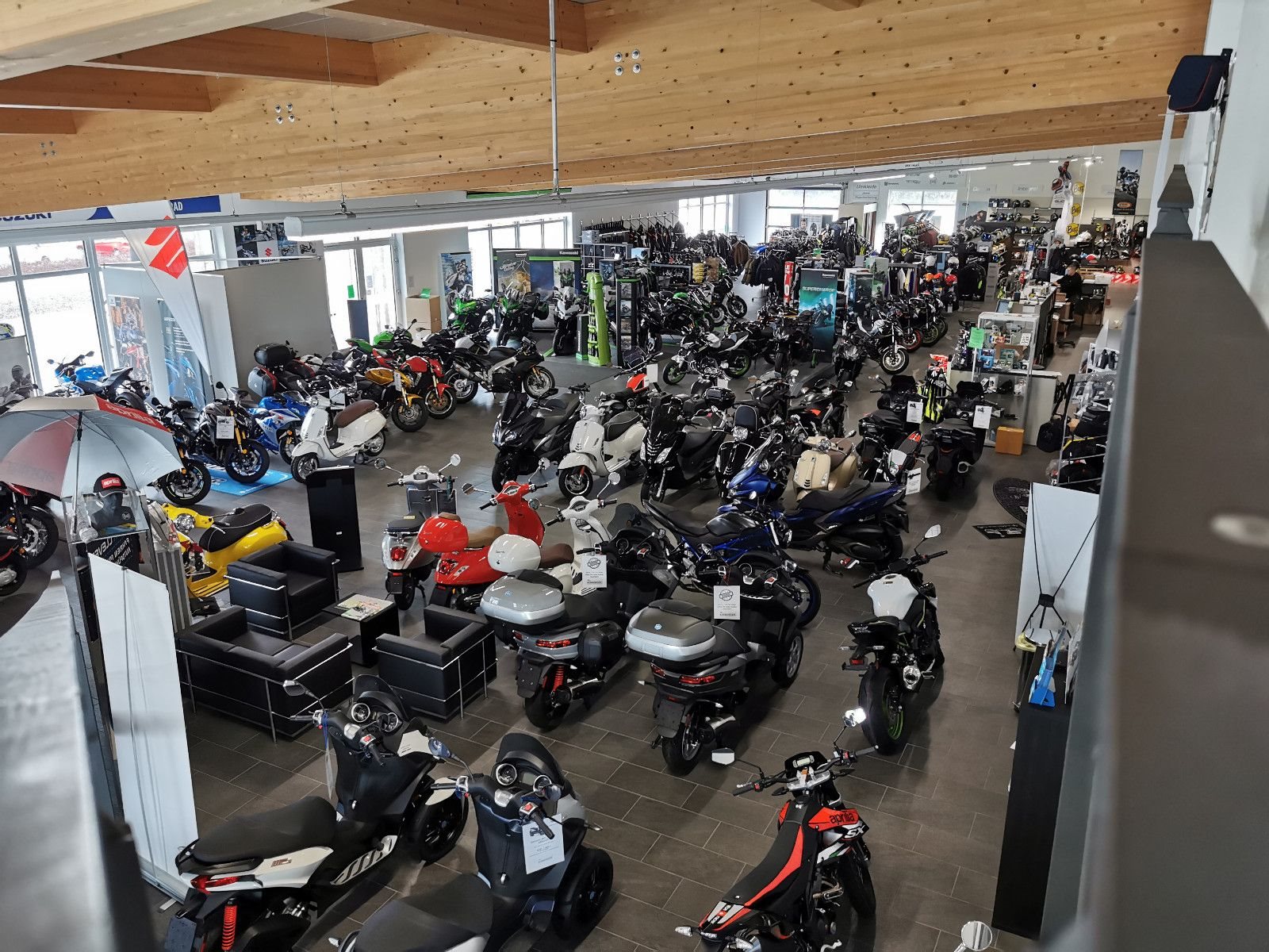 Ständig über 300 Motorräder, Roller, Quads und Vespas auf Lager in unserer Ausstelllung!