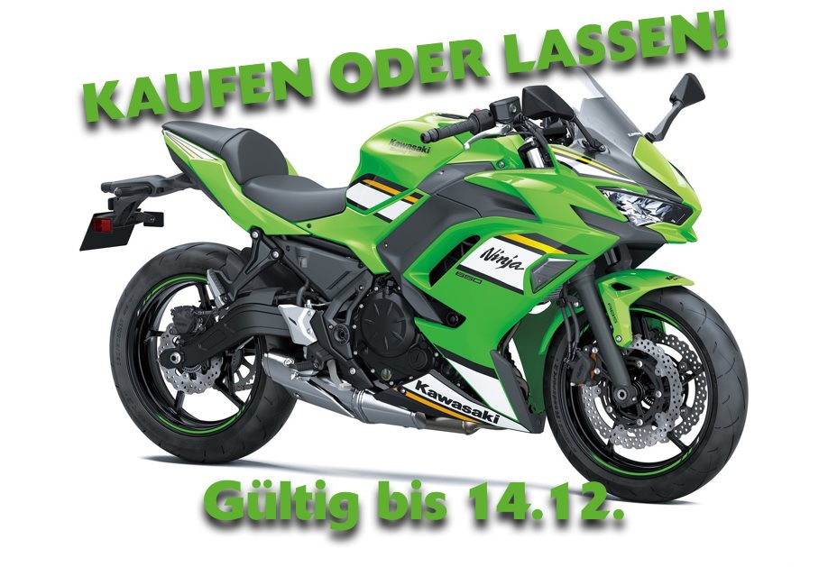 • Du bist Führerschein Neuling oder hast die Aufstufung auf A gemacht? Dann spare bei dem Kauf deiner neuen Kawasaki 650€ mit dem Starterbonus.