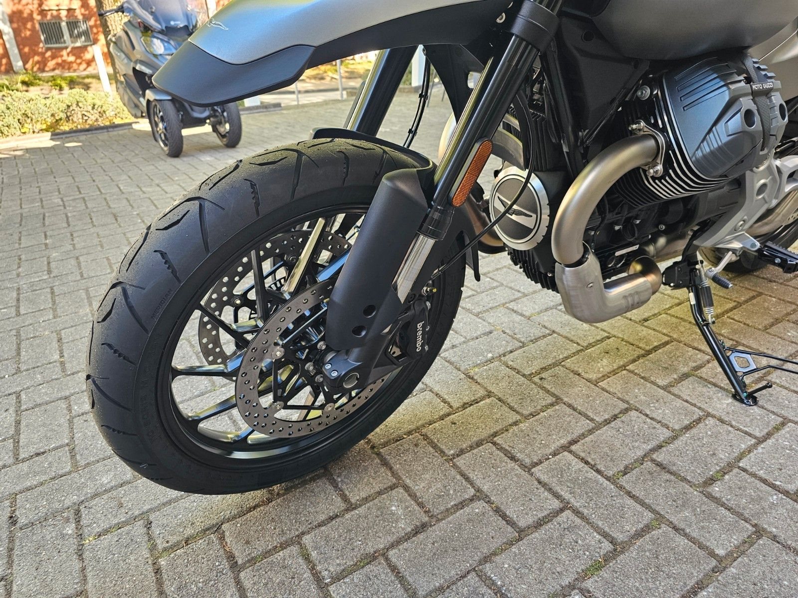 - Bremsen Das zuverlässige und präzise Bremsen der V85 TT beruht auf der Kombination aus radialen Brembo-Monoblock-Bremssätteln vorne und einer Scheibe mit einem Durchmesser von 260 mm hinten, so dass Sie jeden Kilometer in absoluter Sicherheit genießen können.