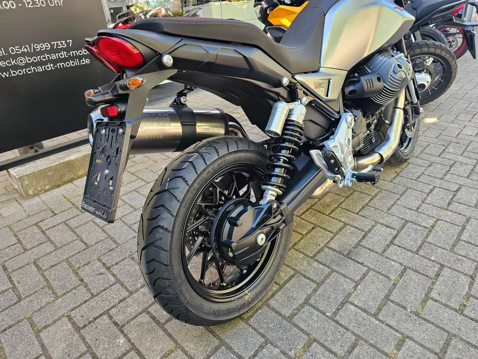 - Reifen Speichenräder mit 17" und 19" Tubeless-Reifen mit geländetauglichem Profil sorgen dafür, dass die V85 TT auf jedem Untergrund mächtig Spaß macht.