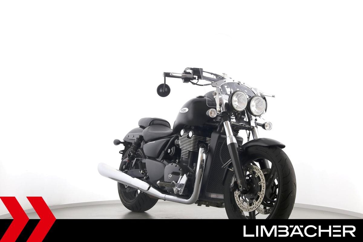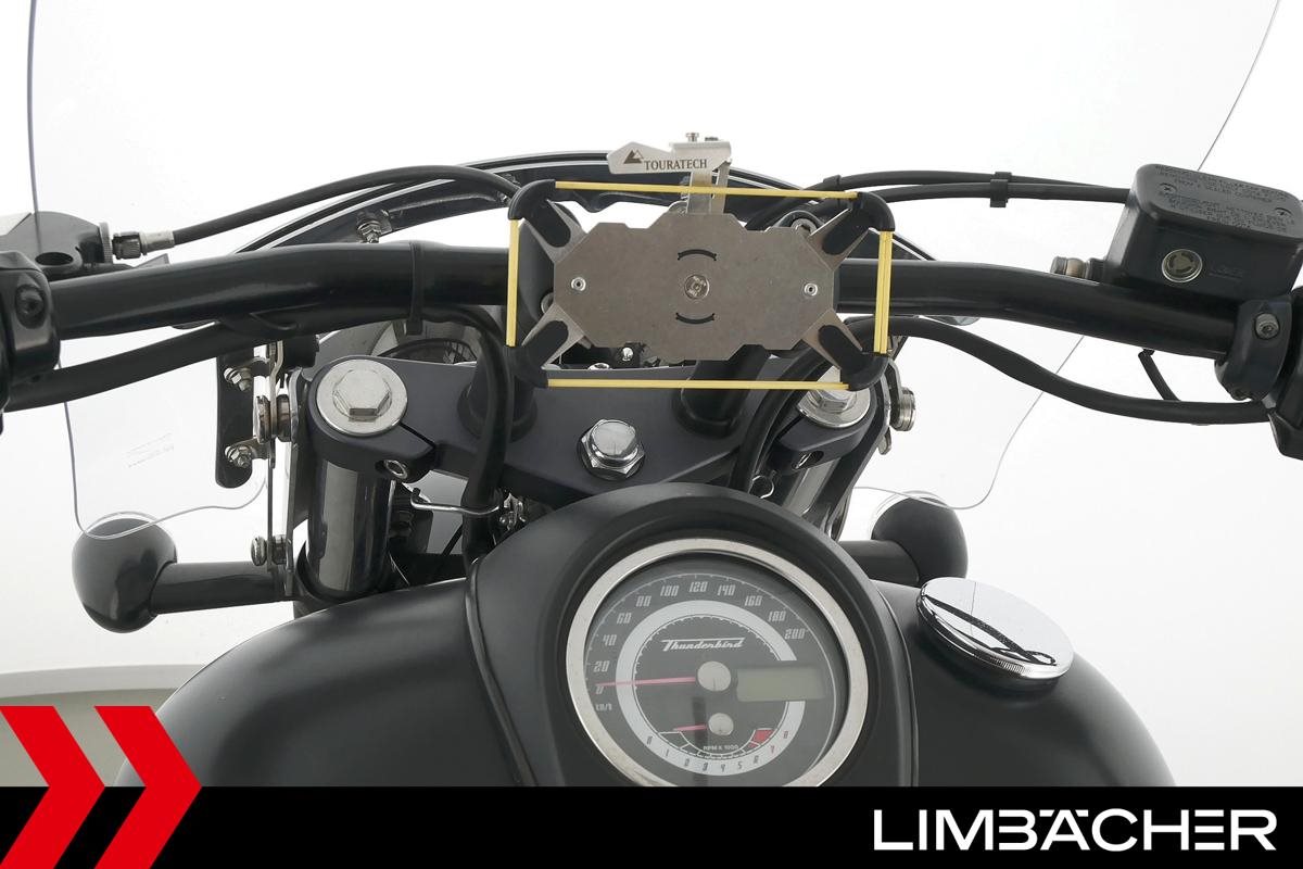 Eine Triumph Thunderbird Storm 1700 in gepflegtem Zustand u.a. mit Wilbers-Federbeinen sowie großer Touringscheibe.