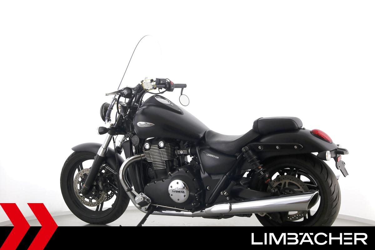 Eine Triumph Thunderbird Storm 1700 in gepflegtem Zustand u.a. mit Wilbers-Federbeinen sowie großer Touringscheibe.