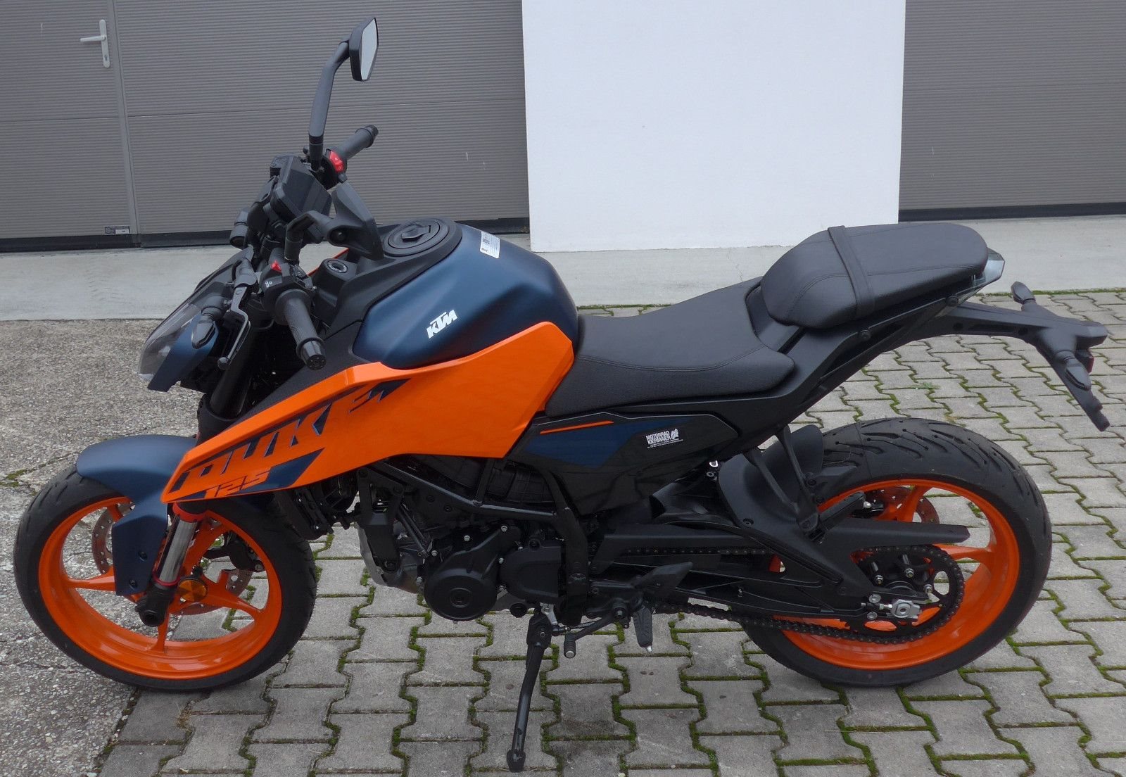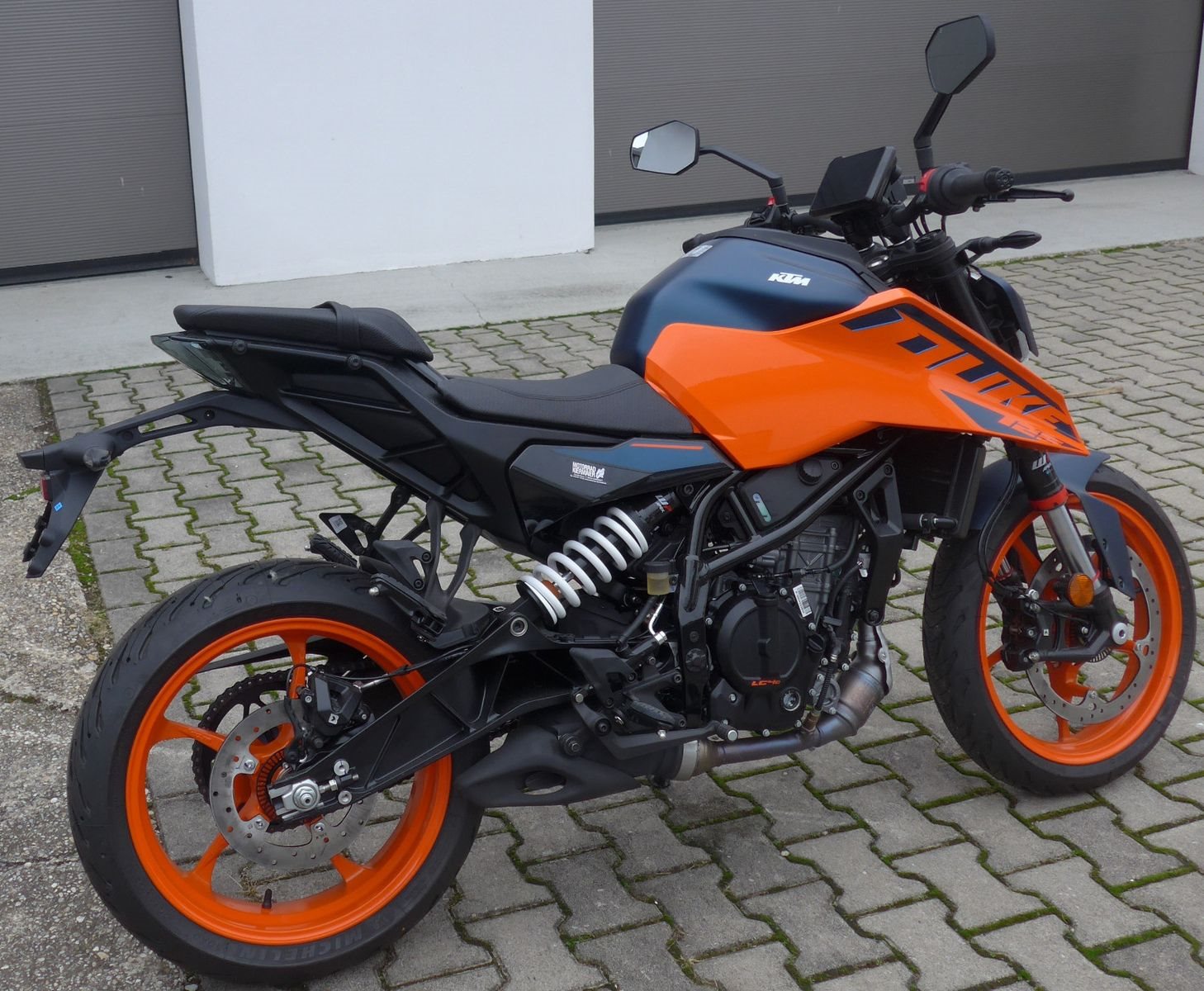 Wir haben die neue 125 Duke ABS Modell 2024 in beiden Farben zum Aktionspreis lagernd vor Ort. Für eine individuelle Farbkombination tauschen wir auch ohne Aufpreis die serienmäßigen Tankverkleidungen gegen eine jeweils andere Farbe (schwarz oder orange). Wir erstellen dir gerne ein Angebot für deine individuelle Konfiguration mit kurzem Kennzeichenhalter, Lenkerendenspiegeln, Akrapovic Auspuff usw. Solltest du noch weitere Fragen haben, stehen wir gerne zur Verfügung.