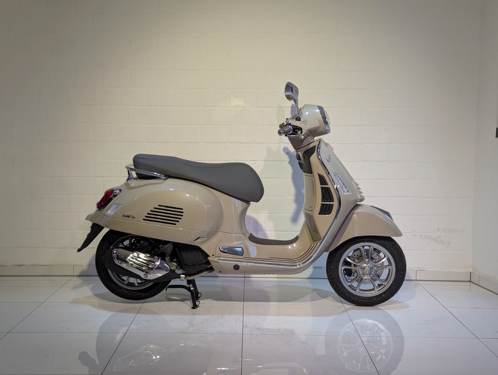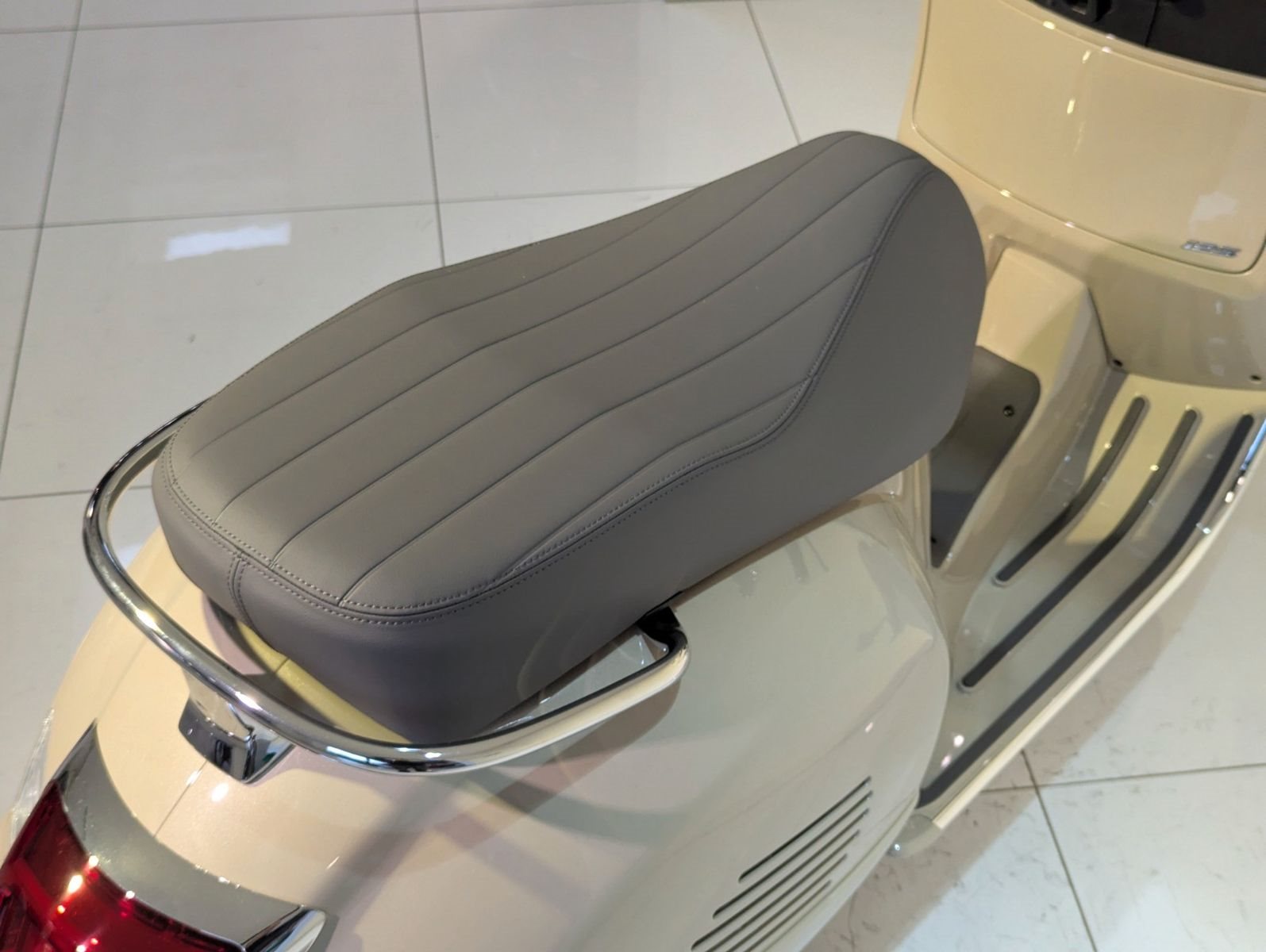 Die Vespa GTS ist bis ins kleinste Detail durchdacht. Die Farben sind leuchtend und glänzend, der Sitz und die Innenausstattung sind aufeinander abgestimmt, Chromelemente sorgen für einen zusätzlichen Hauch von Eleganz.