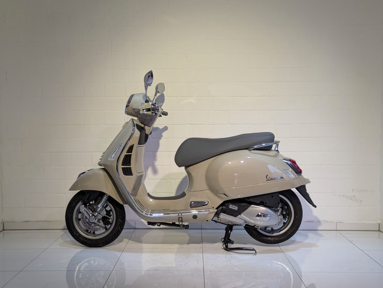 Die Vespa kombiniert Stil, Stabilität und Handling in einem klaren und eleganten Design. Diese scheinbar bescheidene Vespa mag zurückhaltend wirken, hat aber eine überraschend mutige Seite an sich.