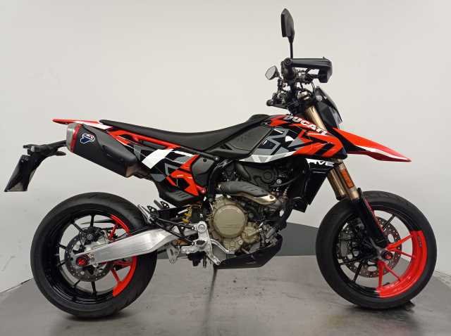 Schicke Hyper 698 RVE, ausgestattet mit dem originalen Sportpaket von Ducati (Termignoni-Auspuff, kurzer Kennzeichenhalter und LED-Blinker), zudem sind noch Achspads montiert.