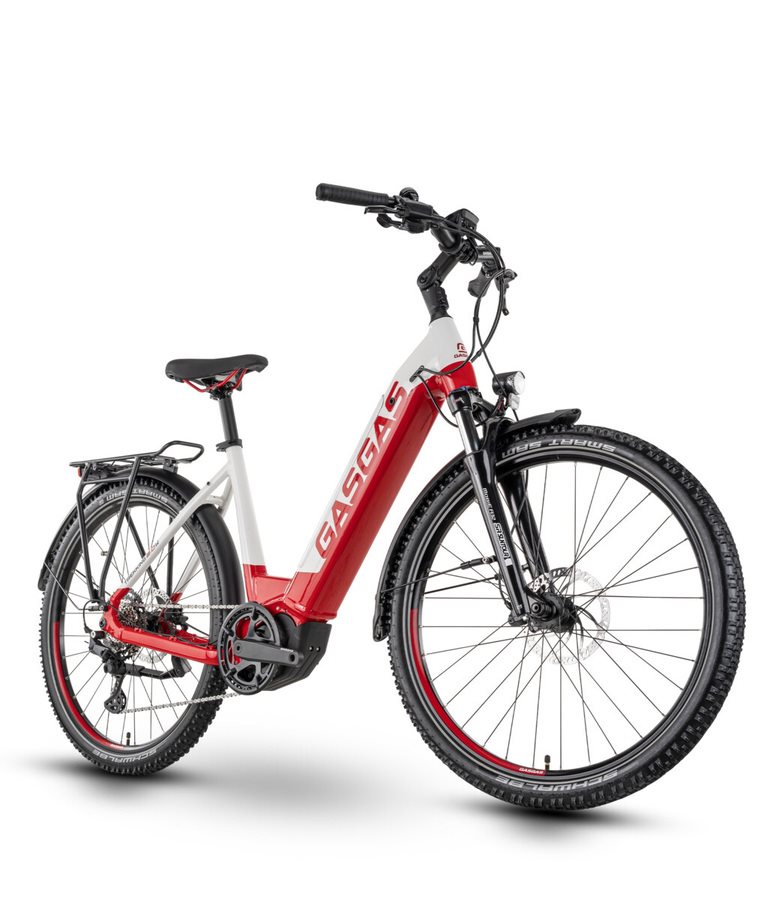 GASGAS G-Trekking 2.0 Modell 2023 sofort verfügbar Größe bitte anfragen auch als Herren erhältlich SPEZIFIKATIONEN LAUFRADGRÖSSE: 27.5 /584mm RAHMEN: 27.5 , Alloy 6061, integrierter Akku, Boost GABEL: SR SUNTOUR Mobie-A32 NLO, Feder, 75 mm, tapered MOTOR: Yamaha PW-ST, 250 W, 70 Nm AKKU: 630 Wh, 36 V DISPLAY: Yamaha Display C, LCD-Display, Micro-USB ZUL. FAHRZEUGGESAMTGEWICHT: 130 kg ANHÄNGERFREIGABE: JA BEDIENEINHEIT: Yamaha C KETTE: KMC e9S SATTEL: GASGAS Ergo MOTOR: Yamaha PW-ST, 250 W, 70 Nm HINTERRADBREMSE: Tektro Vela, 2-Kolben, Hydraulische Scheibenbremse DISPLAY: Yamaha Display C, LCD-Display, Micro-USB RAHMEN: 27.5 , Alloy 6061, integrierter Akku, Boost VORDERRADBREMSE: Tektro Vela, 2-Kolben, Hydraulische Scheibenbremse SPEICHE: Mach1, Edelstahl REIFEN: Schwalbe Smart Sam, Performance, 54-584, 27.5x2.1 GRIFFE: GASGAS Ergo, Schraubgriffe LENKER: GASGAS Riser 31,8 mm, 700 mm, Sweep: 9 °, Rise: 12 mm SATTELSTÜTZE: GASGAS, 31,6 mm, 350 mm, Patent VORBAU: GASGAS 31.8, Ahead, einstellbar SCHEINWERFER: Herrmans MR4, 120 lm, Standlicht RÜCKLICHT: AXA Blueline E, Standlicht SCHALTHEBEL: Tektro SL-M350R SCHALTWERK: Tektro RD-T350, 9-S LADEGERÄT: Simplo Schnellladegerät, 4 A VORDERRAD: Rim: Mach 1 TRUCKY 30, geöst / Hub: GASGAS DA210F, 6-Loch, Steckachse HINTERRAD: Rim: Mach 1 TRUCKY 30, geöst / Hub: GASGAS DA210R, 6-Loch, 12x148 mm, Steckachse, HG GEPÄCKTRÄGER: GASGAS Tour, MIK, 15 kg belastbar, Ja ZAHNKRANZ: Tektro CS-M350, 11-46 T KETTENBLATT: GASGAS, 44 T GABEL: SR SUNTOUR Mobie-A32 NLO, Feder, 75 mm, tapered KURBELARM: GASGAS EC40, Aluminium geschmiedet, JIS AKKU: 630 Wh, 36 V GEWICHT: 26.4 kg STÄNDER: Eurofender Tempo PEDALE: GASGAS, Aluminium