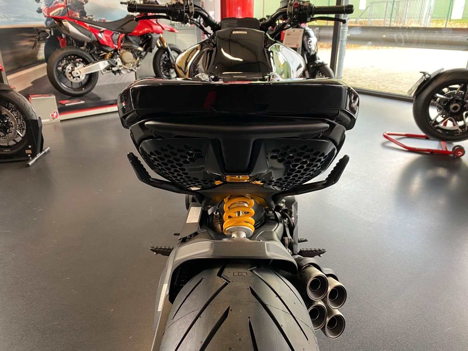 -Ducati Fahrmodi -Ducati Traction-Control -Ducati Quick-Shifter -Ducati Kurven ABS -Ducat Multimedia System -Ducati Power Launch -Ducati Turn-By-Turn Navigation / Vorbereitung -TFT Display -240?er Hinterreifen -LED Scheinwerfer -Dynamische Blinker -Heck LED Matrix - Sonderfelgen X-Serie