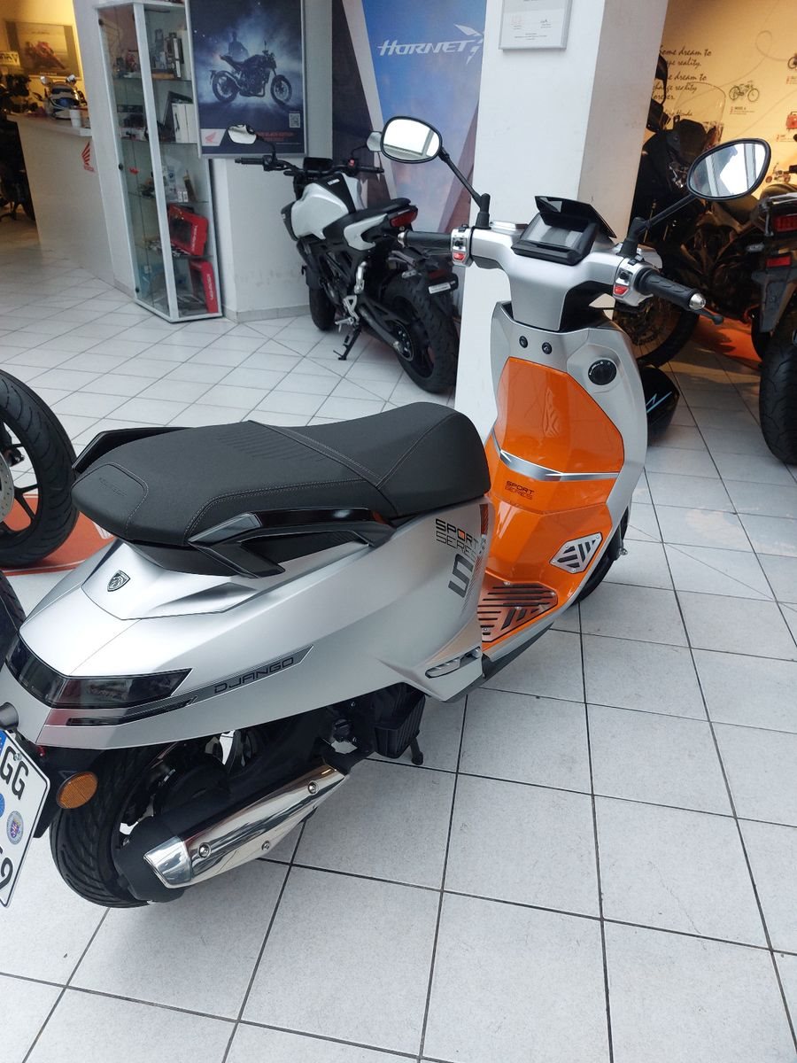 Peugeot Django neu 125 Sport, silber Orange, Vorführfahrzeug, ABS, Euro 5, TFT Display mit Konnektivität, USB Anschluß, Tagfahrlicht, Warnblinker