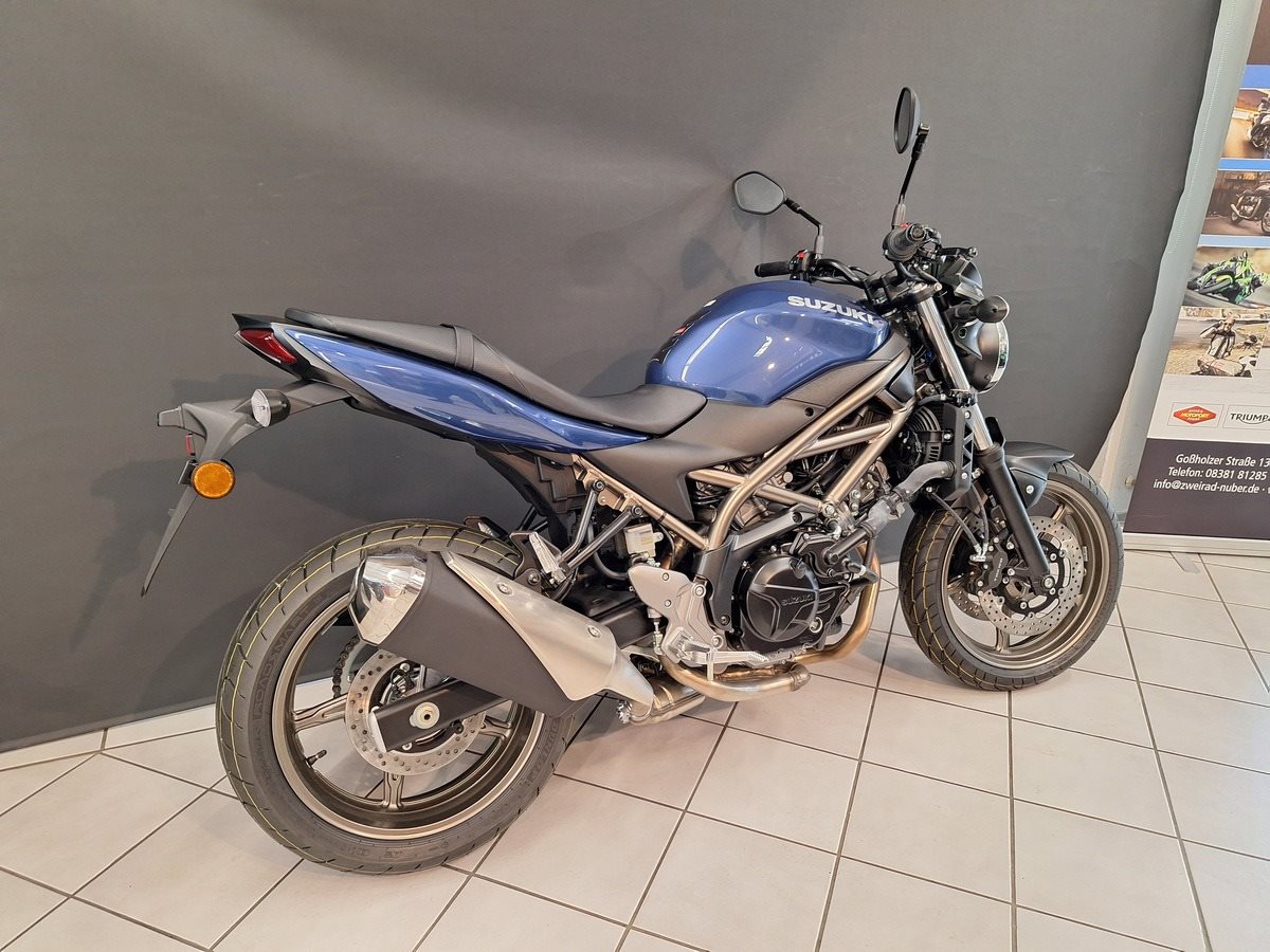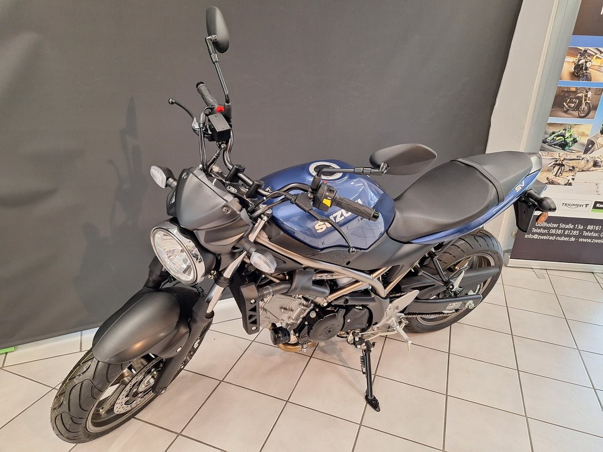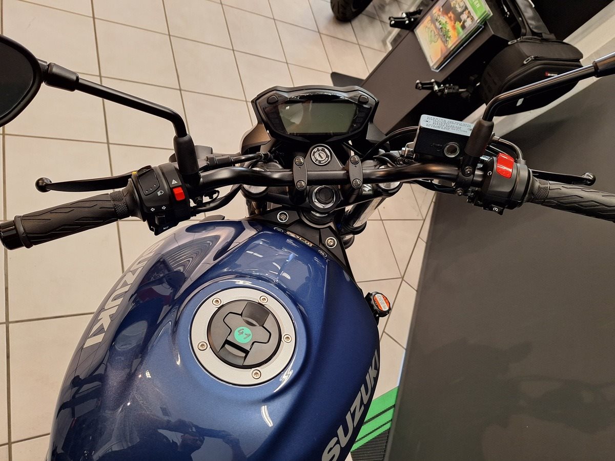Bei der neuen Suzuki SV650 stehen Fahrspaß, Alltagstauglichkeit und Funktionalität klar im Mittelpunkt. Für den Spaßfaktor sorgt der 645ccm DOHC 90° Zweizylinder V-Motor, der ein unkompliziertes, phänomenales Handling garantiert. Im Vergleich zu ihrer Vorgängerin hat die neue SV650 um ganze acht Kilo abgespeckt und stattdessen um 3 PS Leistung zugelegt. Damit stellt sie die Gladius 650 eindeutig in den Schatten - am Papier und auf der Straße. Schlank und schnörkellos im Design, stabil und agil im Fahrverhalten, charakterstark und sparsam beim V2-Motor - so begeistert die SV650 auf allen Linien. Umrüstung auf 35kW (48 PS) für Führerscheinklasse A2 möglich. --- UM LANGE WARTEZEITEN ZU VERMEIDEN, UND PROBEFAHRTEN ZU ERMÖGLICHEN, VEREINBAREN SIE BITTE EINEN TERMIN