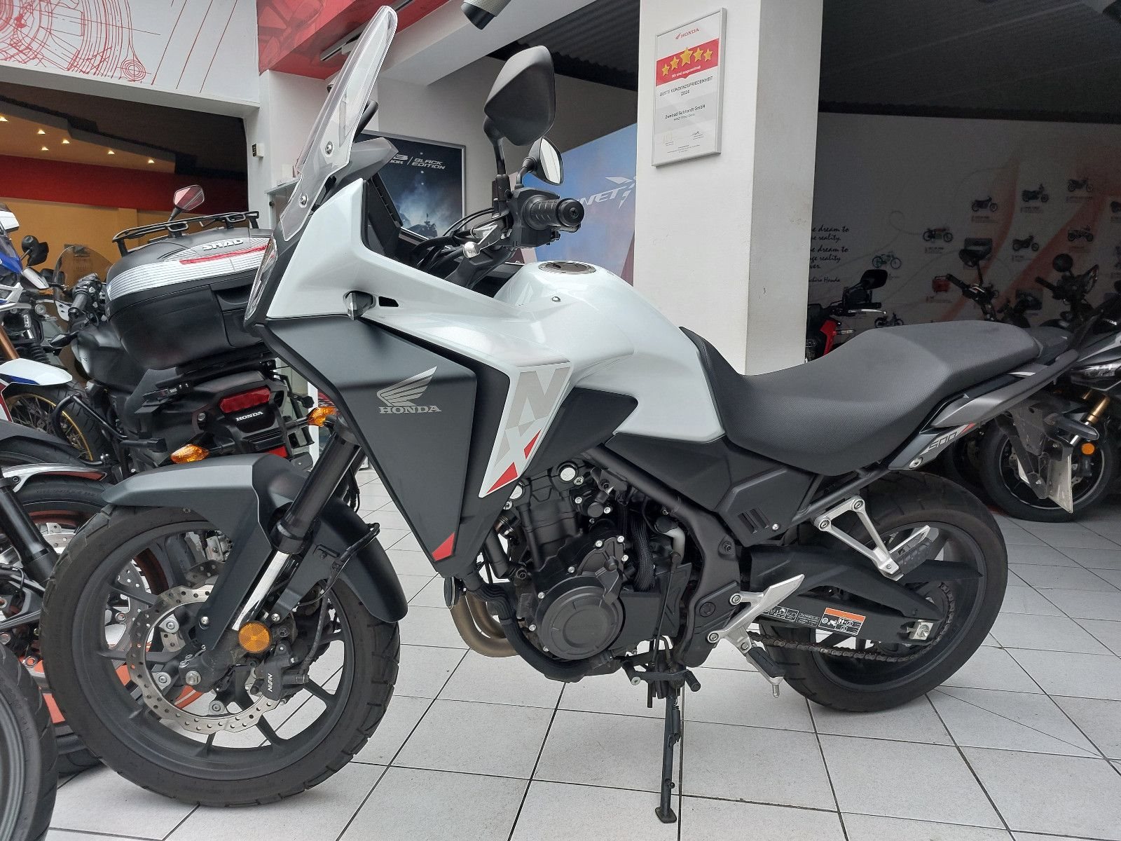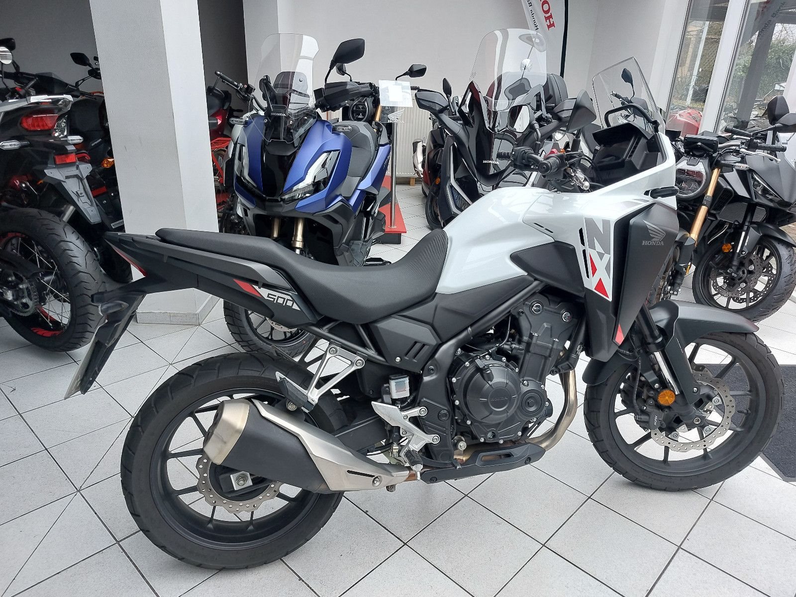 Honda NX500 Gebrauchtfahrzeug, pearl horizon white, unfallfrei, 5 Zoll TFT Farbdisplay mit Konnektivität, HSTC Traktionskontrolle, Notbremssignal, Upside Down Gabel, LED Beleuchtung, Euro 5+, CO2 kombiniert 82g/km, Kraftstoffverbrauch nach WMTC 3,6 l/100Km, Gewicht vollgetank 196kg.